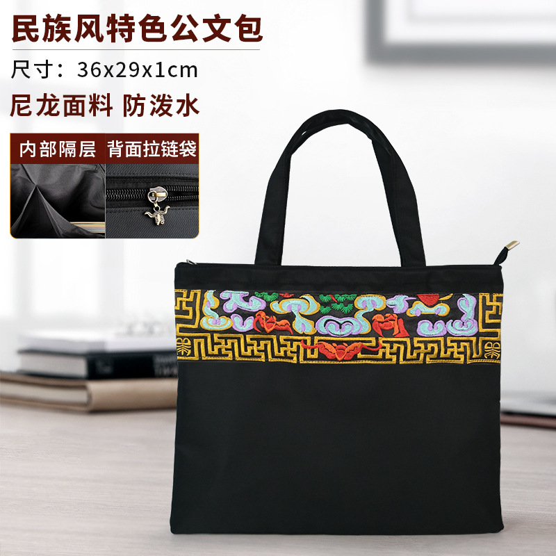 • 블랙-해바라기/틈새 라이트 럭셔리 에스닉 스타일 휴대용 노트북 가방 서류 가방 고급 남성 여성 핸드백