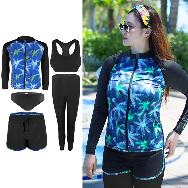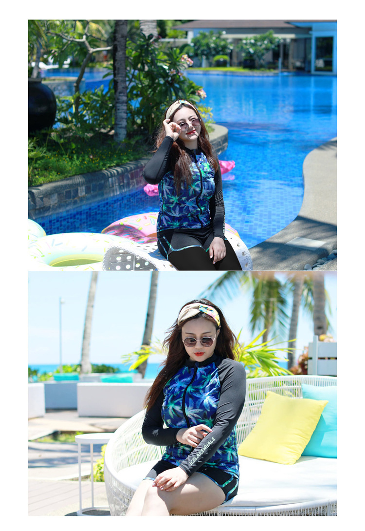 플러스 사이즈 긴 소매 태양 보호 수영복 분할 다이빙 세트 바지 보수적 플러스 뚱뚱한 여자의 수영복 서핑 스노클링 해파리 세트스토어 가기