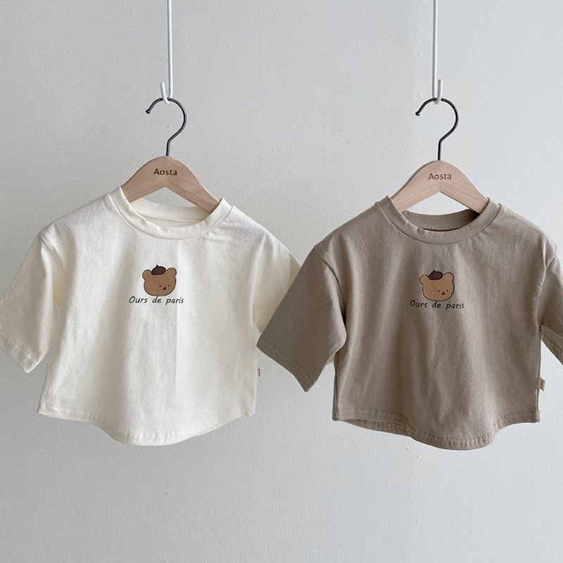 한국 스타일 아동복 어린이 긴팔 티셔츠 2021 봄과 가을 새로운 서양식 소년과 소녀 만화 곰 패션베이스 셔츠스토어 가기