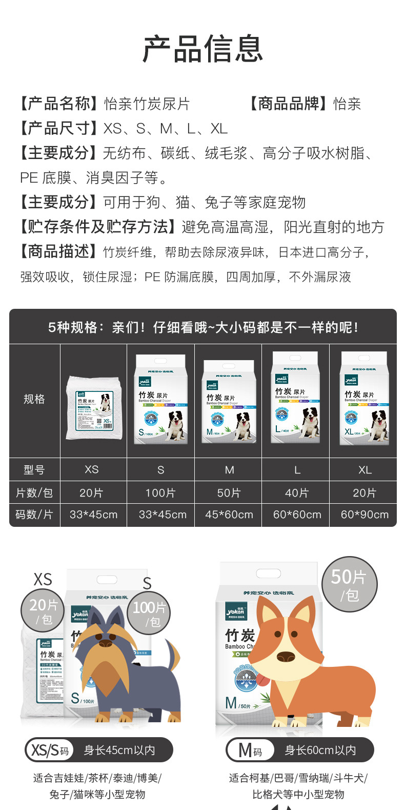 Yiqin 개 기저귀 패드, 애완동물 용품, 고양이 화장실 기저귀, 개와 고양이를 위한 두꺼운 탈취 흡수 기저귀스토어 가기