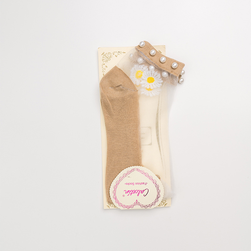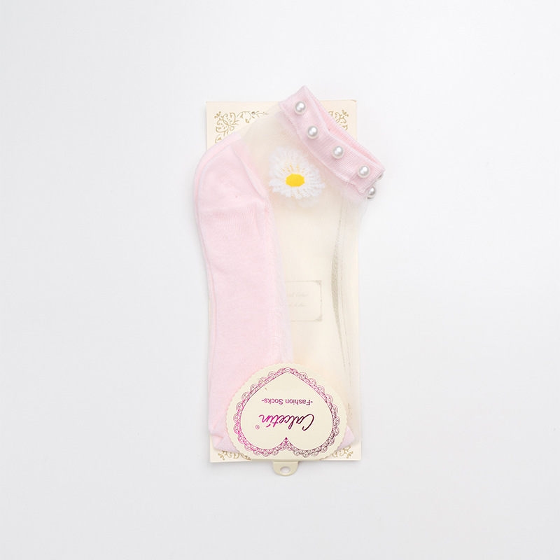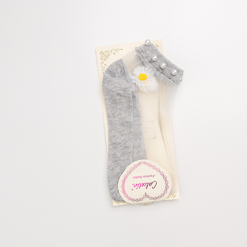 진주 양말 여성용 짧은 양말 여름 얇은 크리스탈 양말 루즈 데이지 얕은 입 보트 양말 투명면 양말 유리 실크 스타킹