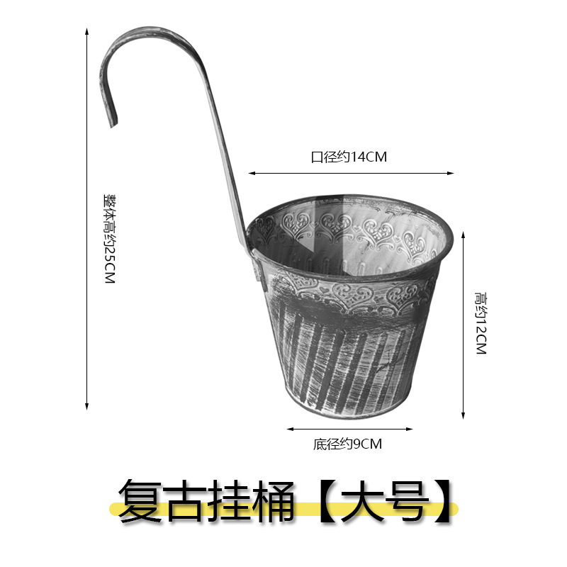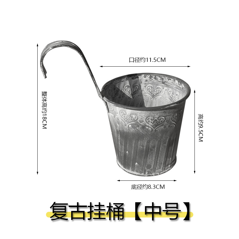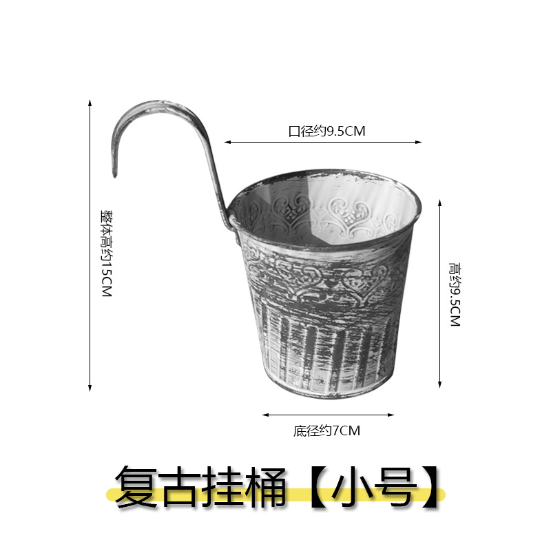 공장 대외 무역 소스 공장 낡은 닦아 흰색 양동이 작은 후크 화분 후크 양동이 복고풍 아연 도금 철 양동이