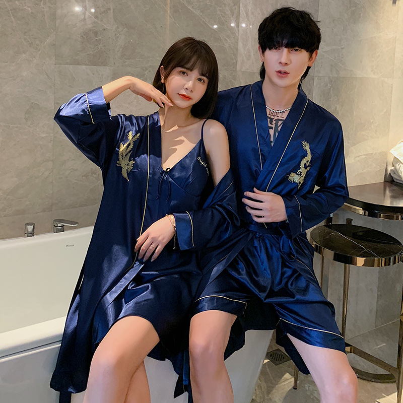 커플 잠옷 실크 긴팔 남성 봄, 가을 얼음 실크 얇은 섹션 여성 서스펜더 스커트 잠옷 여름 홈웨어스토어 가기