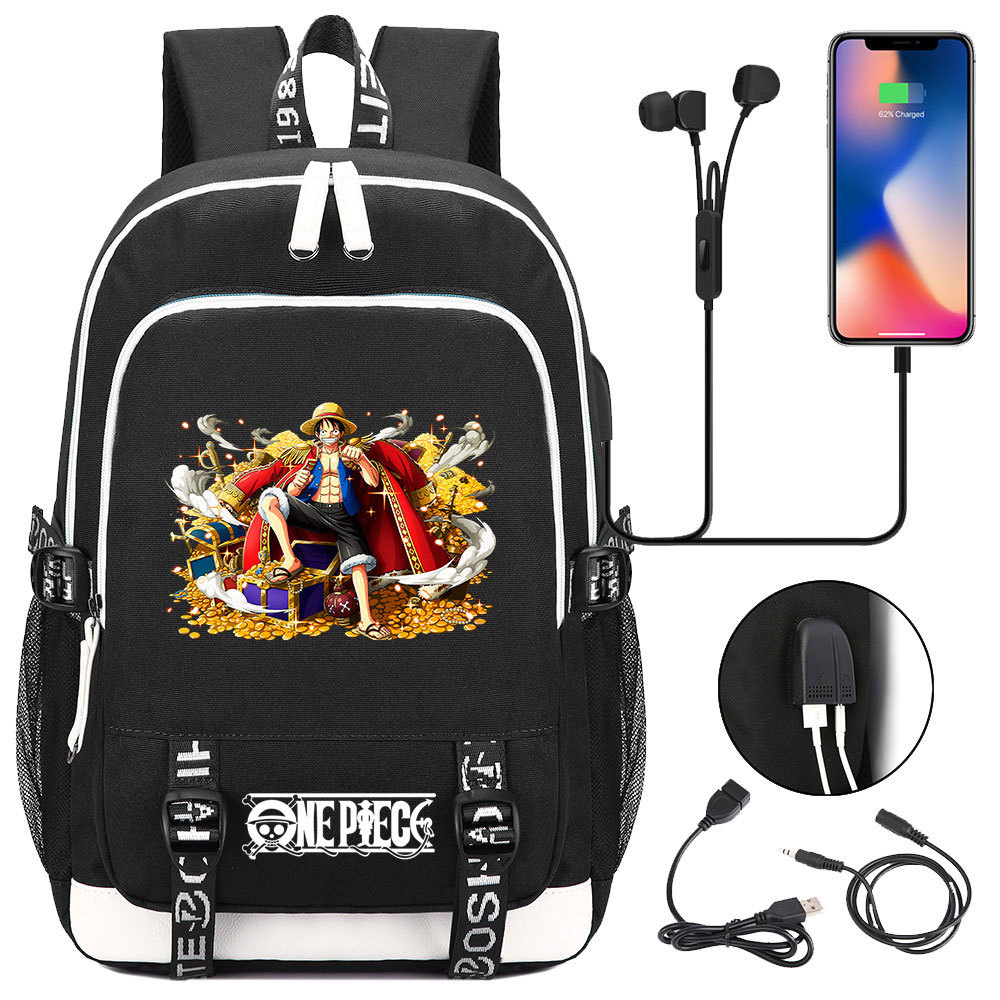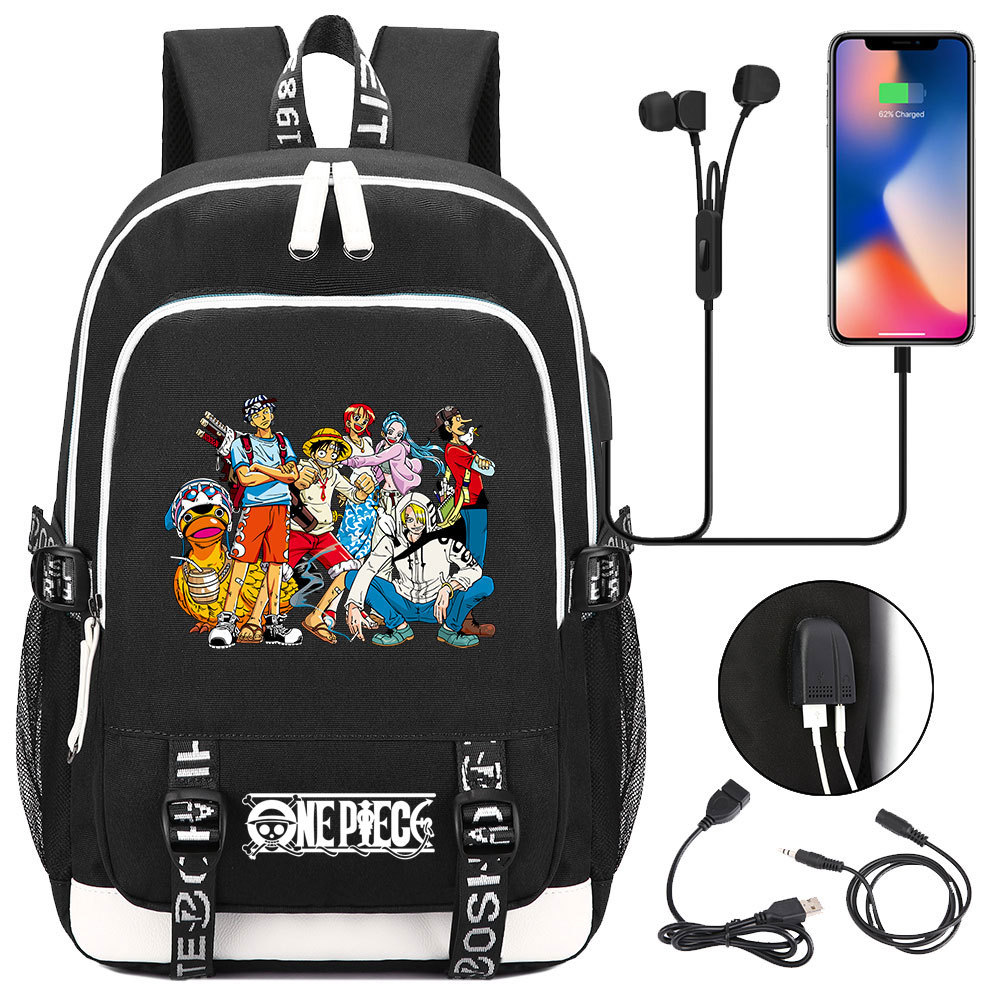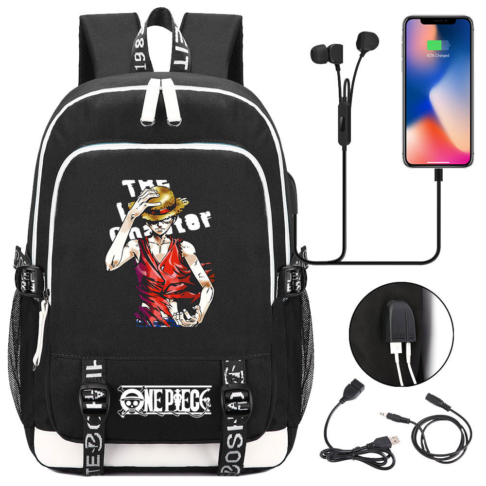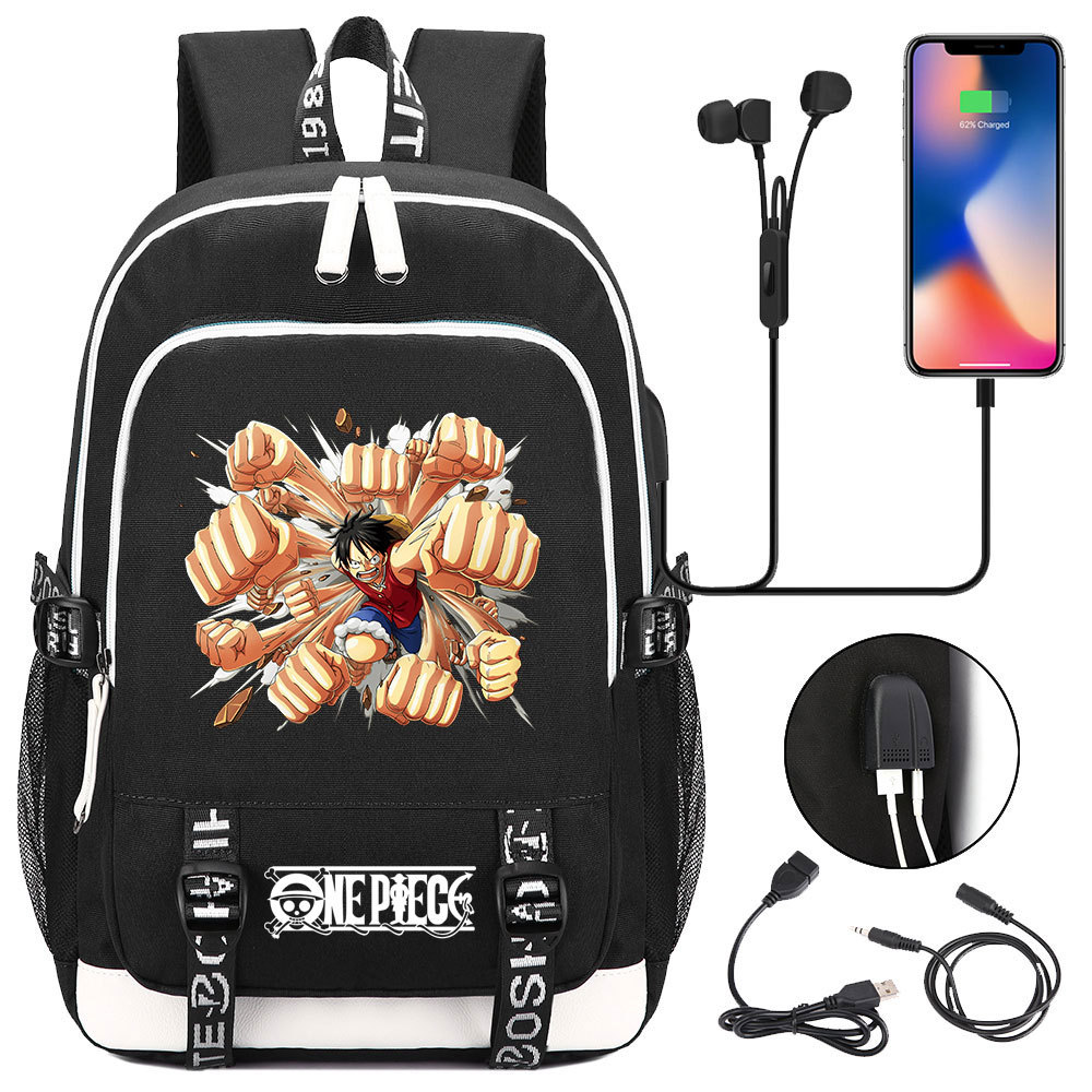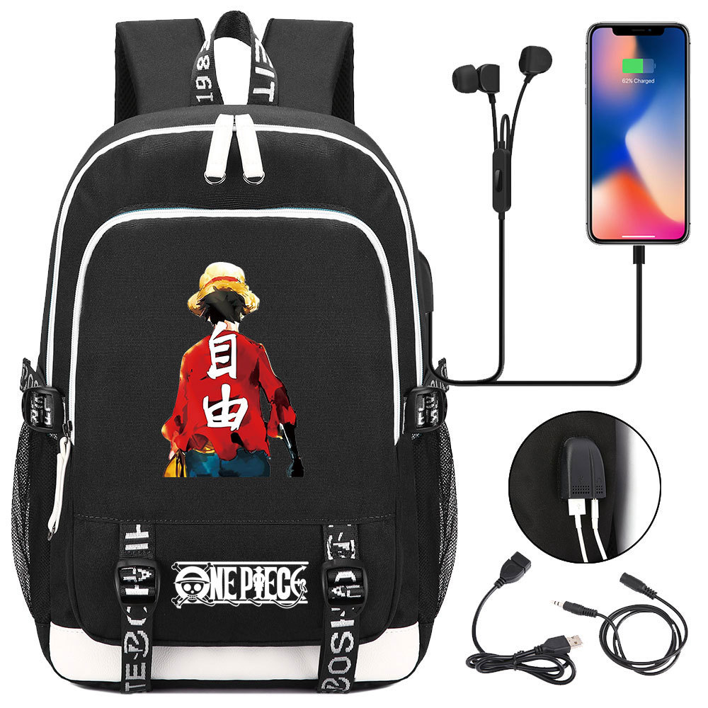 초등 및 중등 학생을위한 새로운 만화 원피스 Lufei 십대 책가방 남성과 여성을위한 USB 캐주얼 배낭