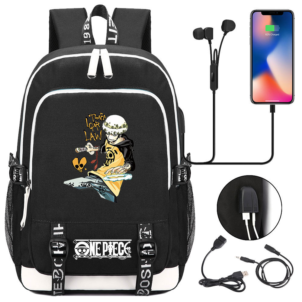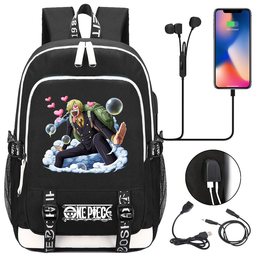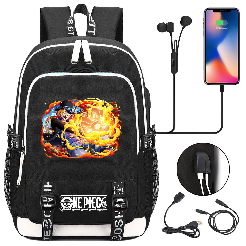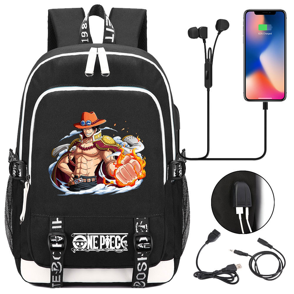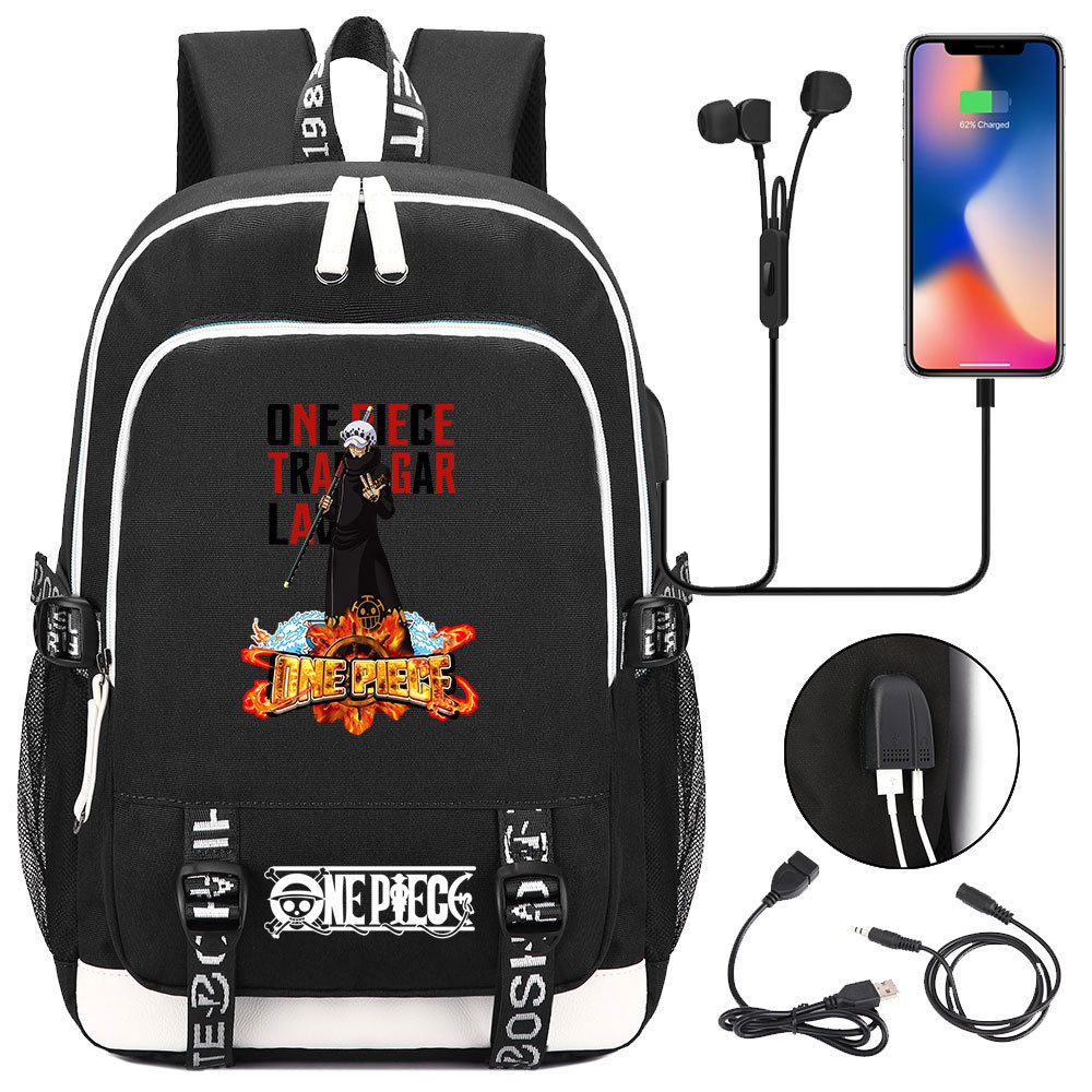 초등 및 중등 학생을위한 새로운 만화 원피스 Lufei 십대 책가방 남성과 여성을위한 USB 캐주얼 배낭