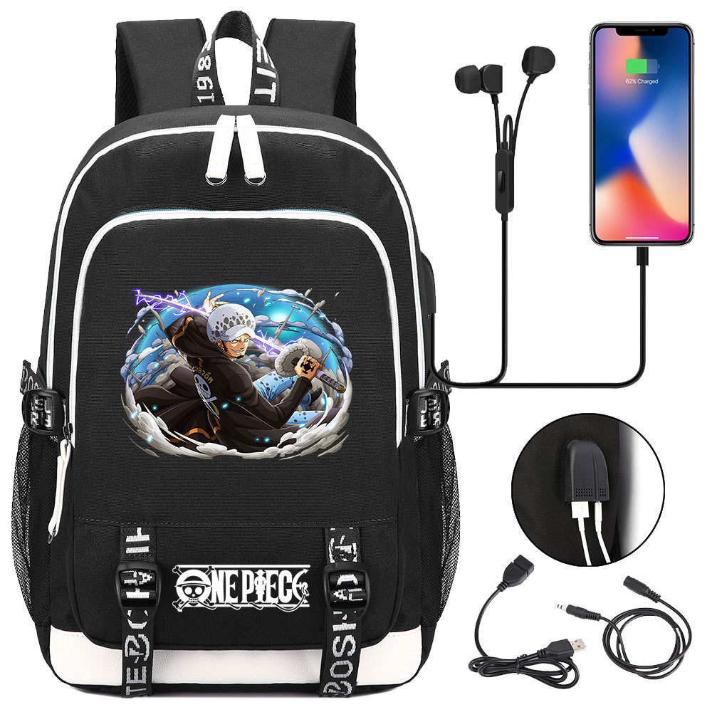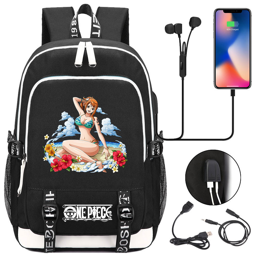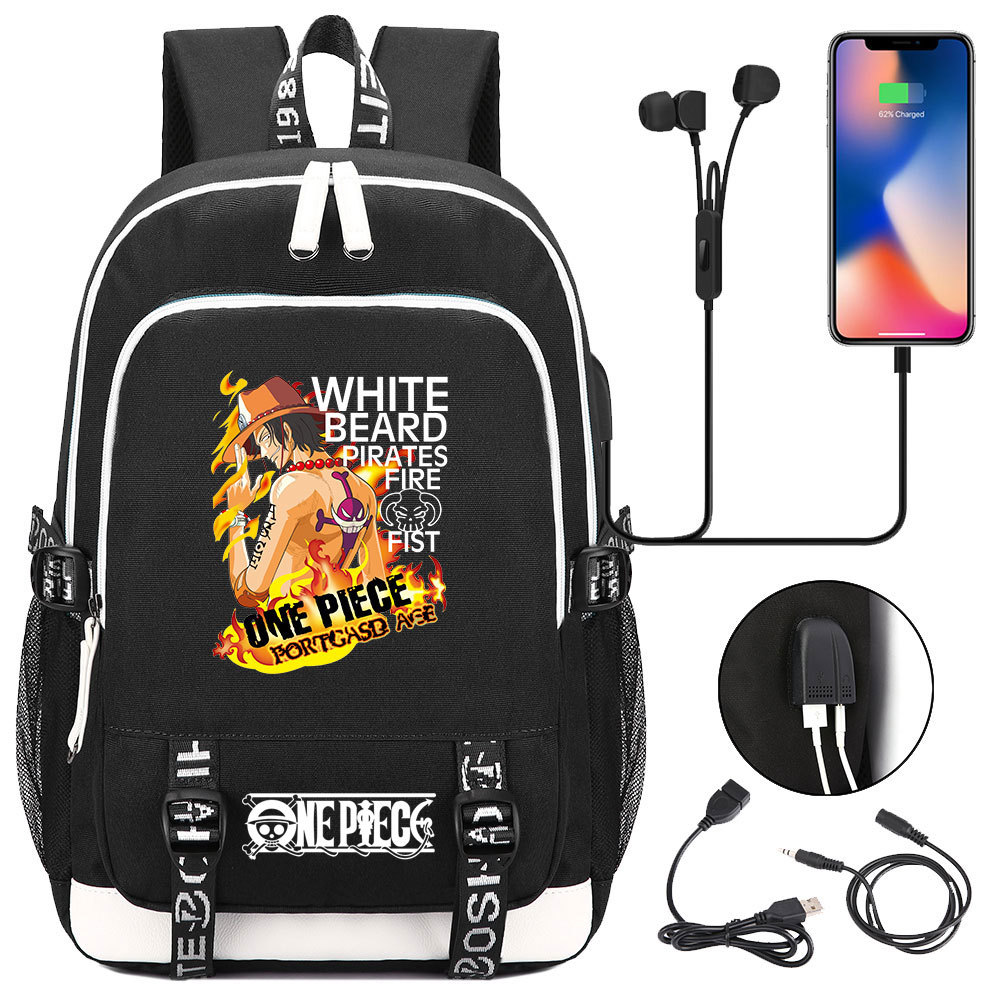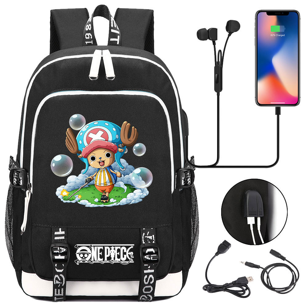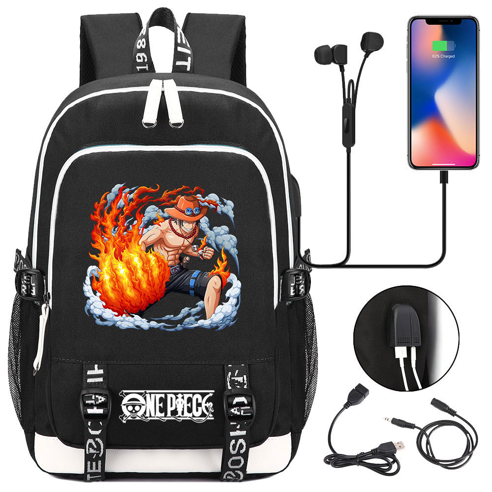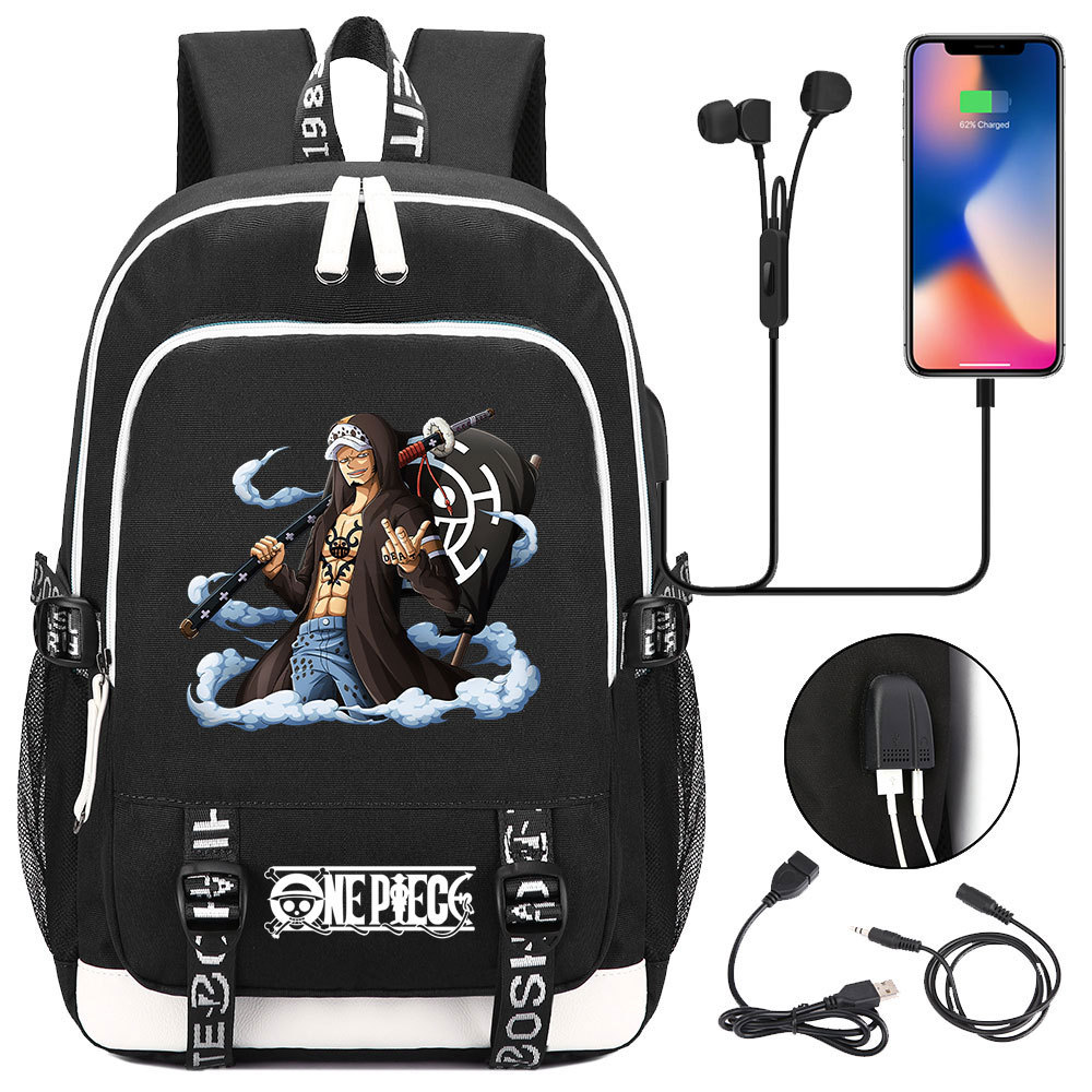 초등 및 중등 학생을위한 새로운 만화 원피스 Lufei 십대 책가방 남성과 여성을위한 USB 캐주얼 배낭
