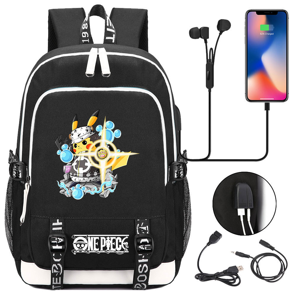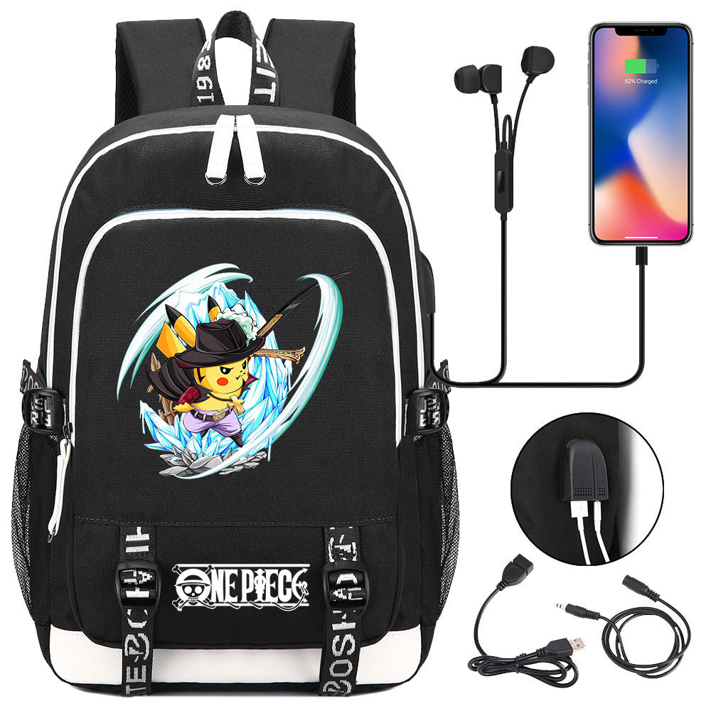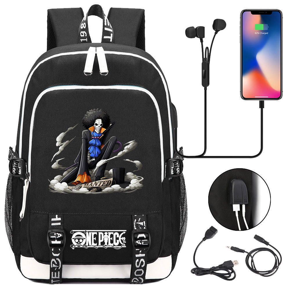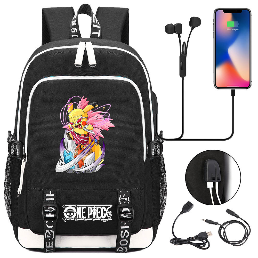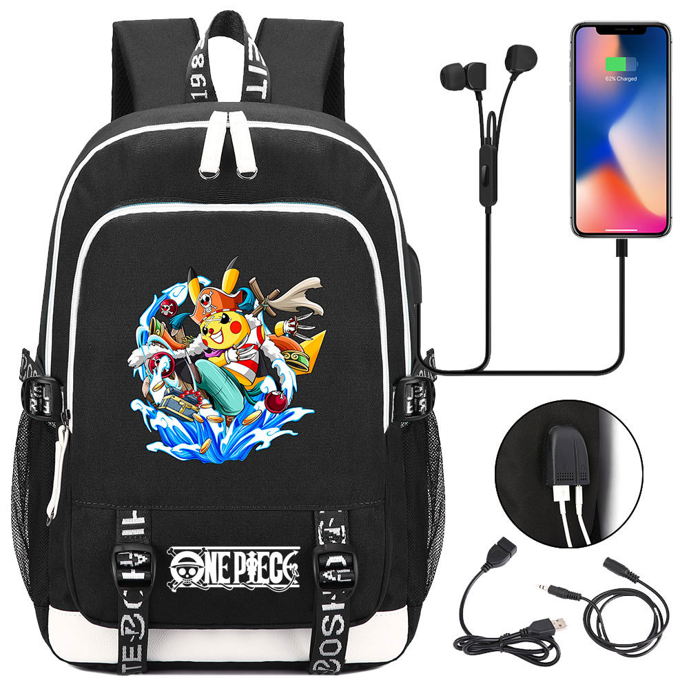초등 및 중등 학생을위한 새로운 만화 원피스 Lufei 십대 책가방 남성과 여성을위한 USB 캐주얼 배낭