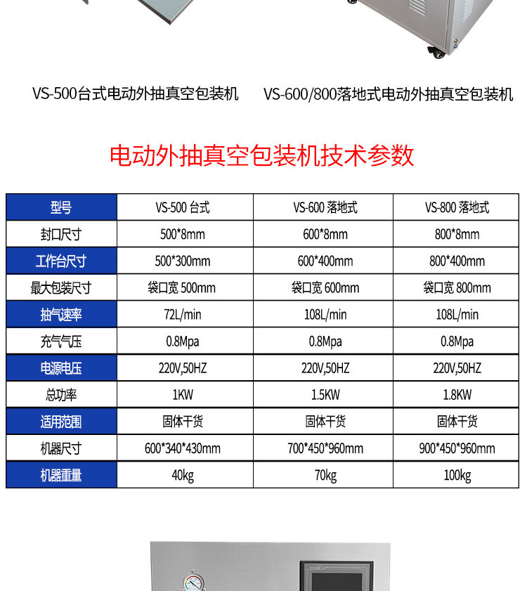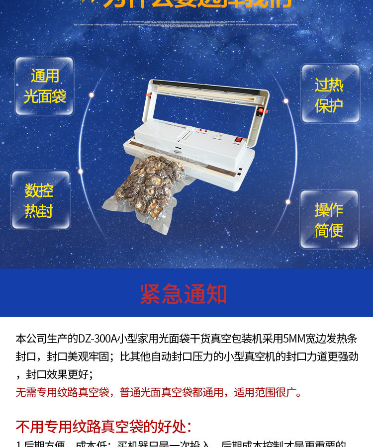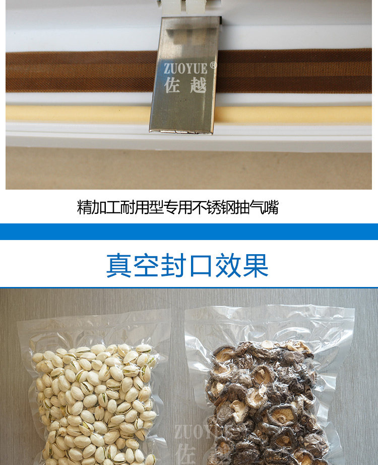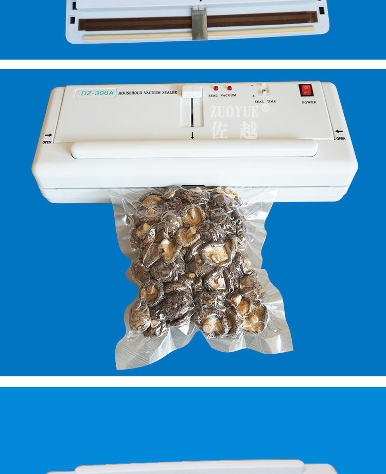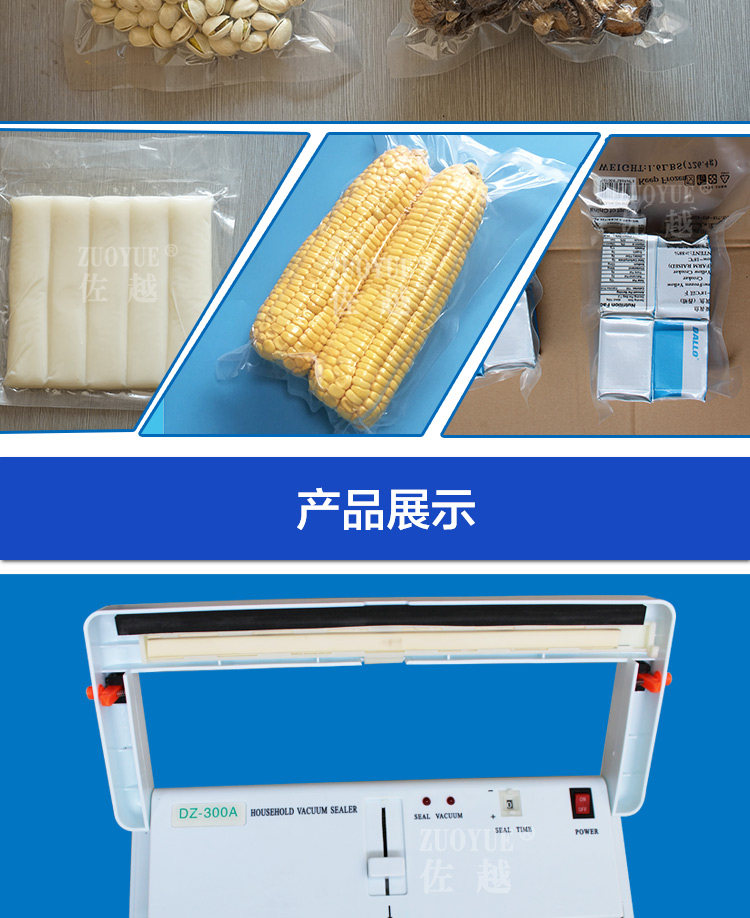型号:DZ-1000全自动连续式真空包装机适用于各种塑料薄膜袋、复合膜袋、铝箔袋的真空包装。对各种肉制品、禽产品、酱菜制品、海产品、大蒜制品、山野菜、粮食、医药、生物制品、电子元件等各种固体、粉状物、半流体进行真空包装,达到隔氧保鲜延长产品的保质期,提高产品档次。