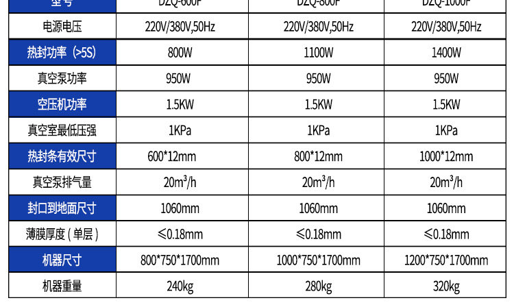 DZQ-400-2S/DZQ-500-2S/DZQ-600-2S凹板双室真空包装机技术参数: