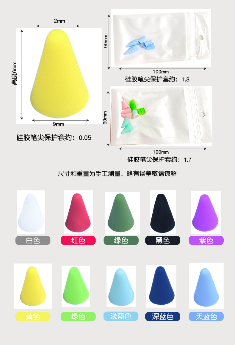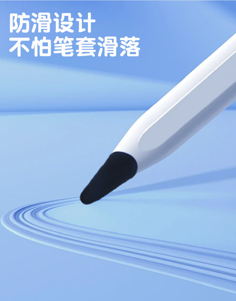 【产品特点】:硅胶笔尖套,防摔设计,呵护笔尖;优质硅胶,无异味,不掉色,不发黄;质地柔软,表面纹理设计增加防滑摩擦力;佩戴笔套不影响使用以及充电;1:1真机开模,细节把控,精心设计;多色可选,换一种颜色,换一个心情,适合不同人群。