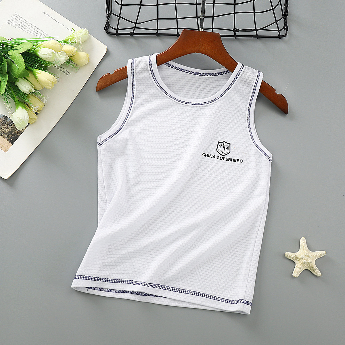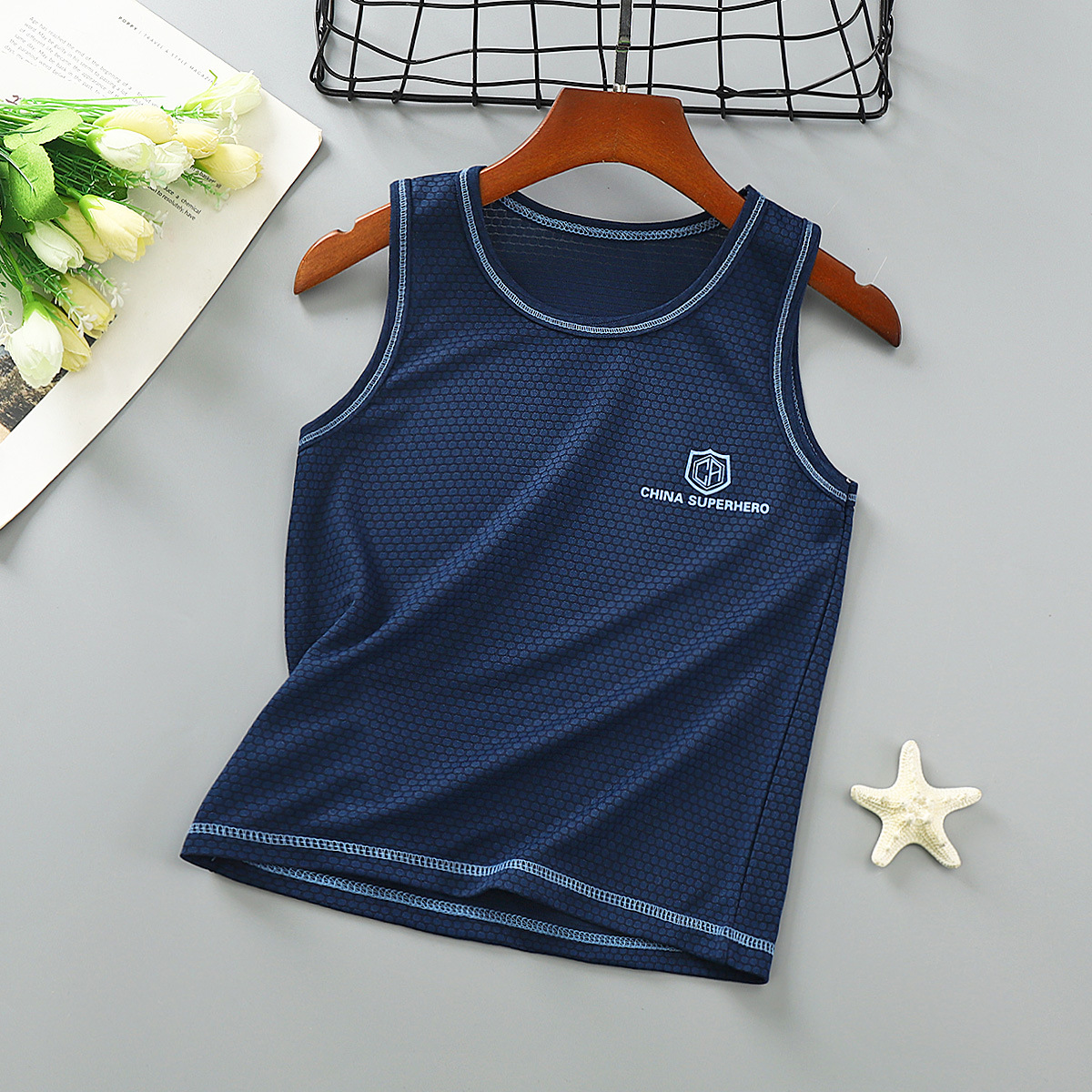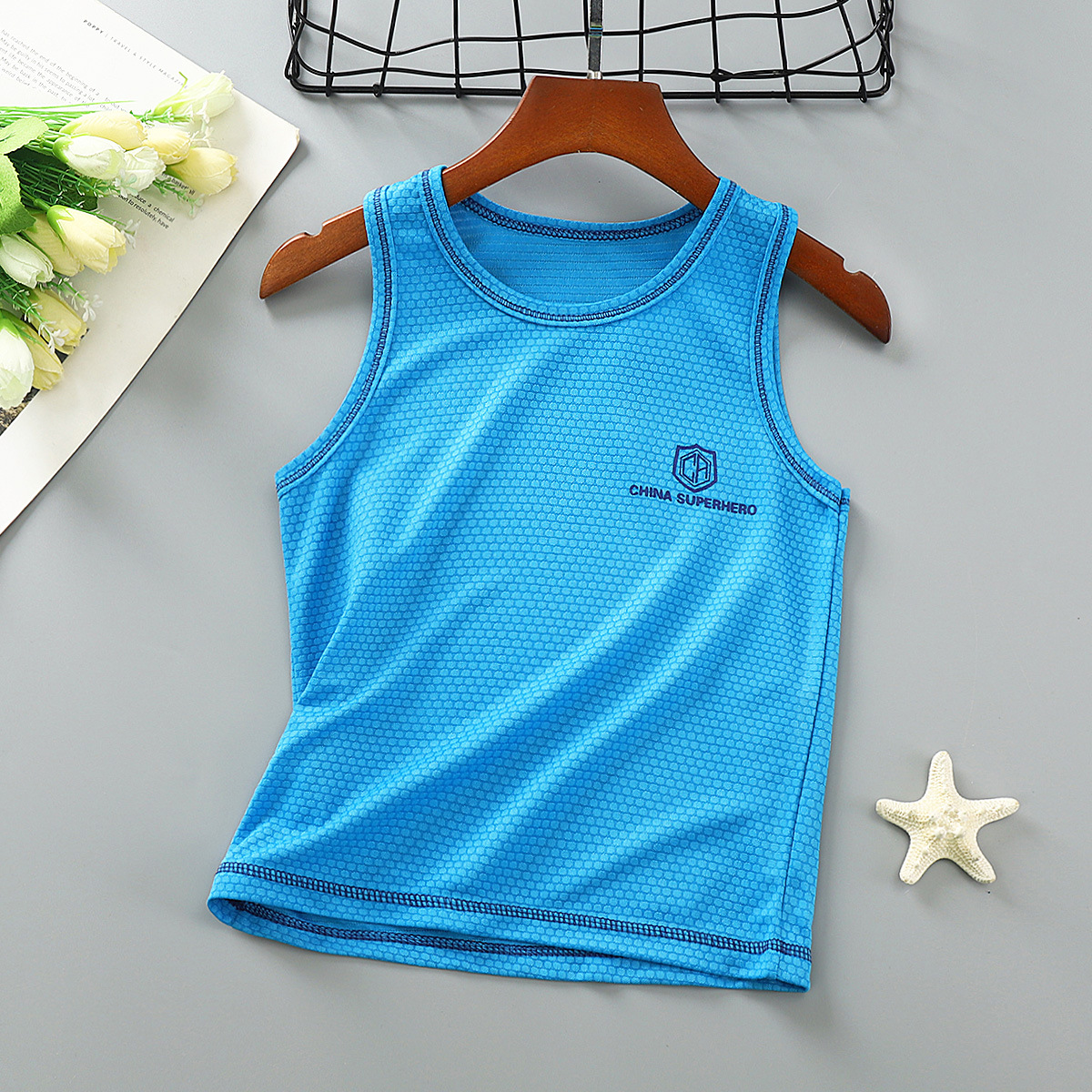 아동용 속건 조끼 2024 여름 신상 메쉬 통기성 멜빵 중대형 남아용 스포츠 민소매 아동복스토어 가기