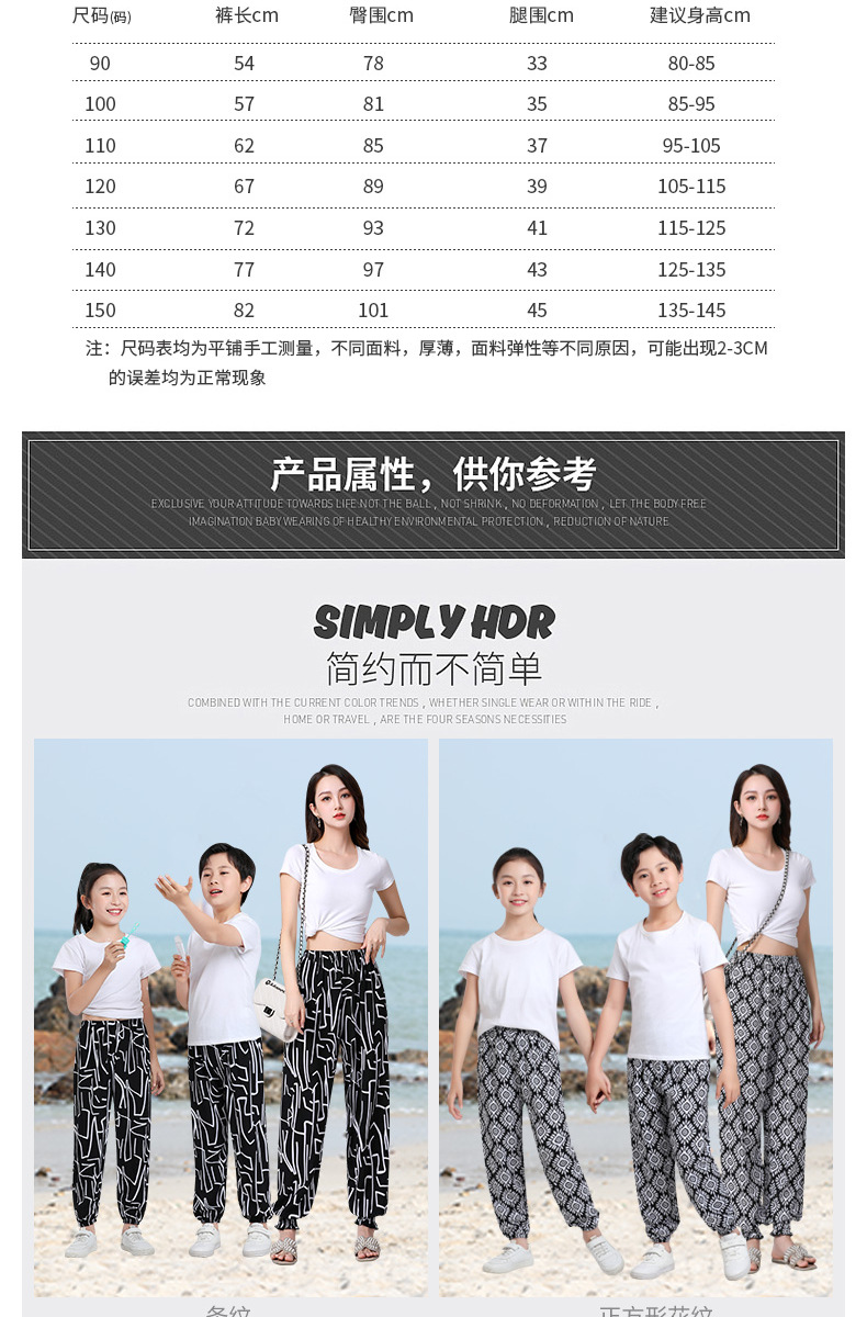 여아용 바지, 여름용 아동용 모기 방지 바지, 남아용 비치 바지, 부모-자식 캐주얼 바지, 유아용 루즈한 블루머