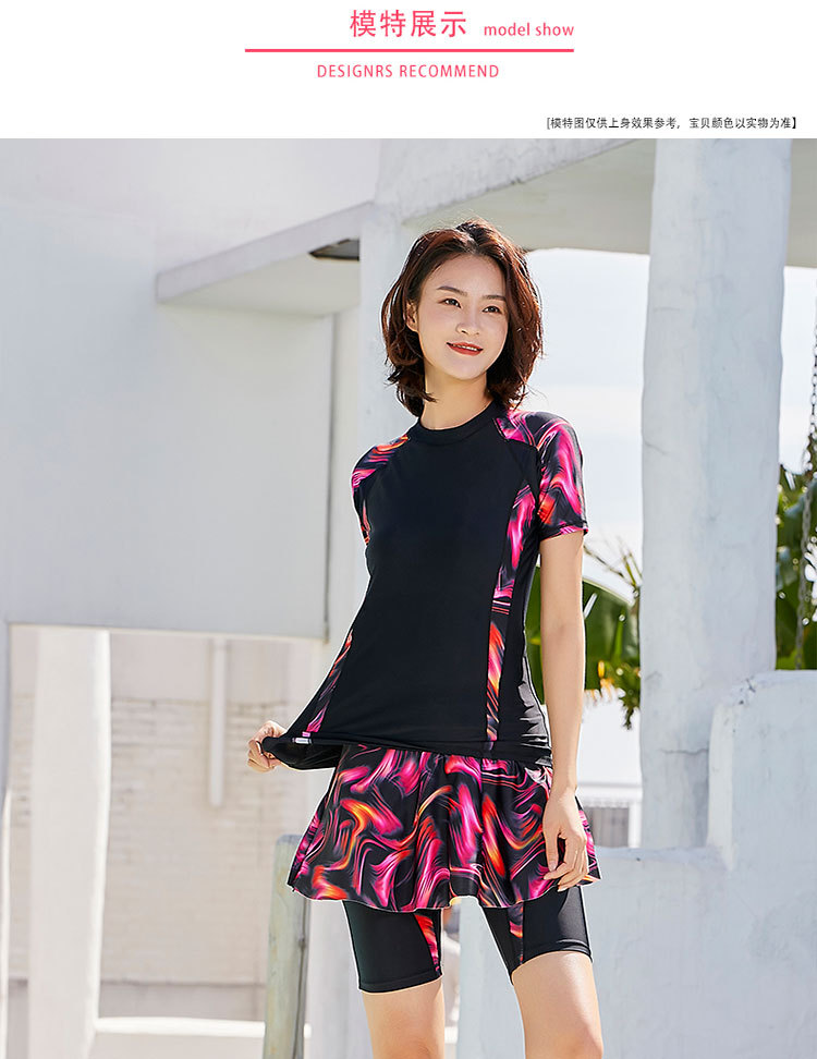 한국 스포츠 수영복 여성용 쓰리피스 세트 반팔 속건 뱃살 덮음 슬리밍 스플릿 보수적 플러스 사이즈 온천 수영복