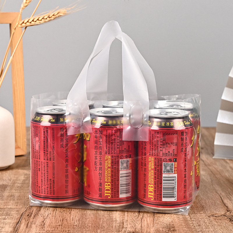 PE 투명 휴대용 비닐봉투 소량 배달용 캔 음료 포장 봉투 공장 도매스토어 가기