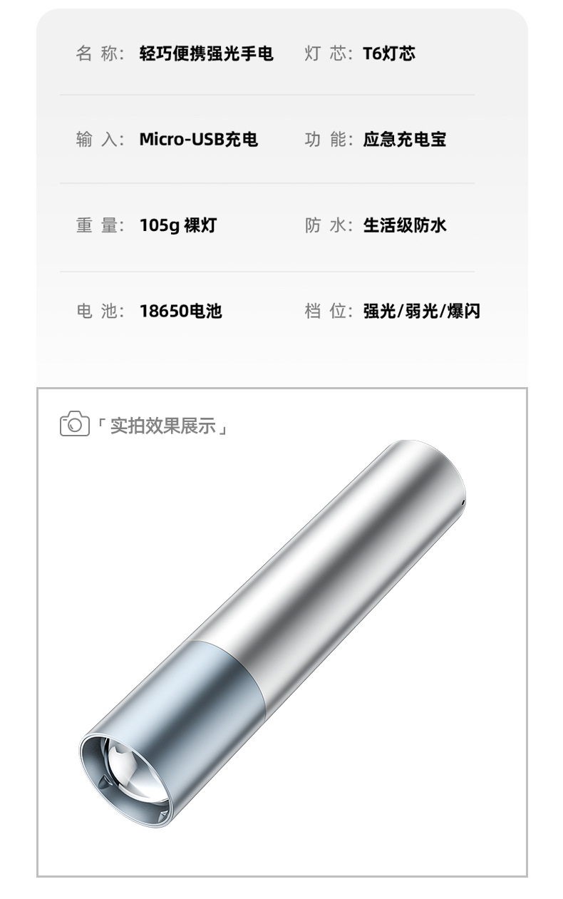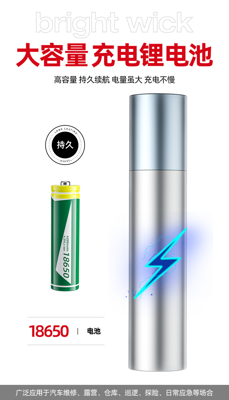 供电:内置1200-1800-2600毫安18650锂电池*1