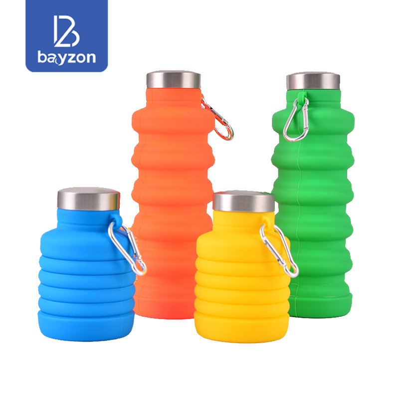 실리콘 컵 개폐식 접이식 컵 야외 스포츠 여행 카라비너와 휴대용 주전자 휴대용 물 컵 새로운
