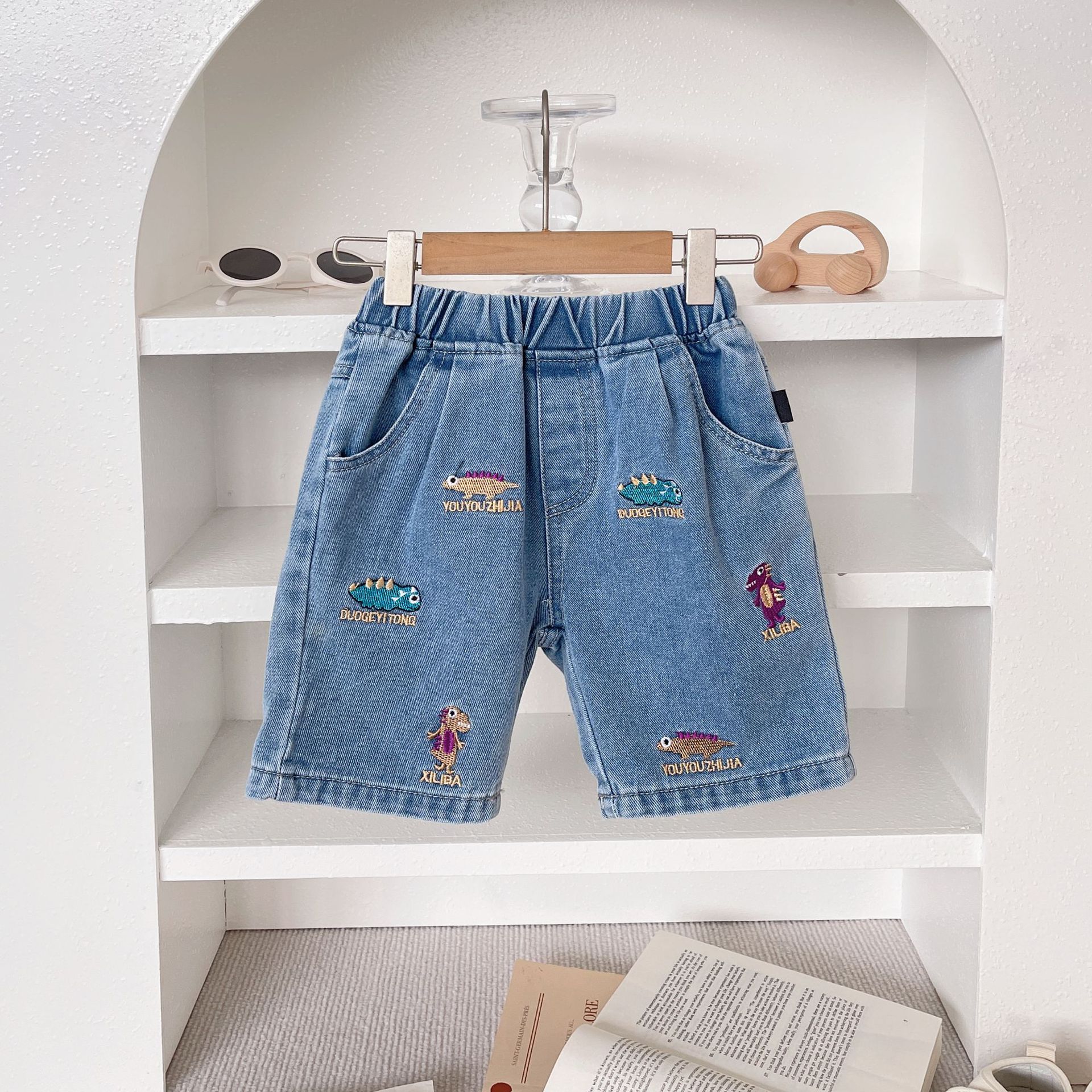 아동복 소년 청바지 2024 새 어린이 자수 공룡 바지 한국식 서양식 반바지스토어 가기