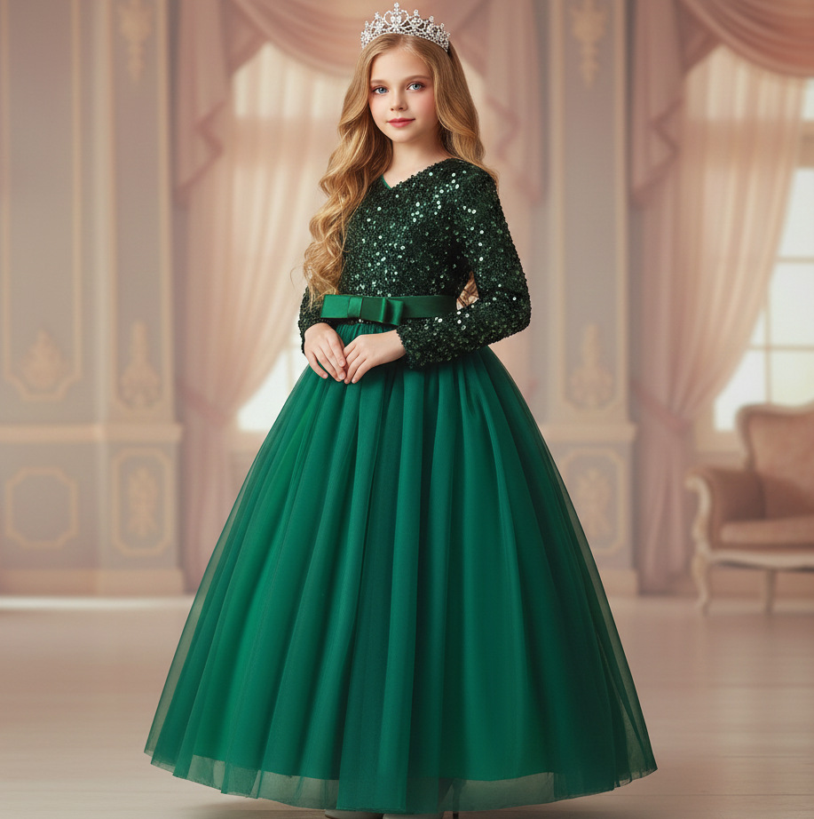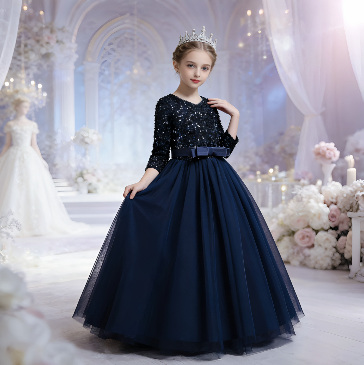 아마존 신상 아동 드레스 공주 드레스 인스 스타일 여아 롱 스팽글 드레스 아동복 도매