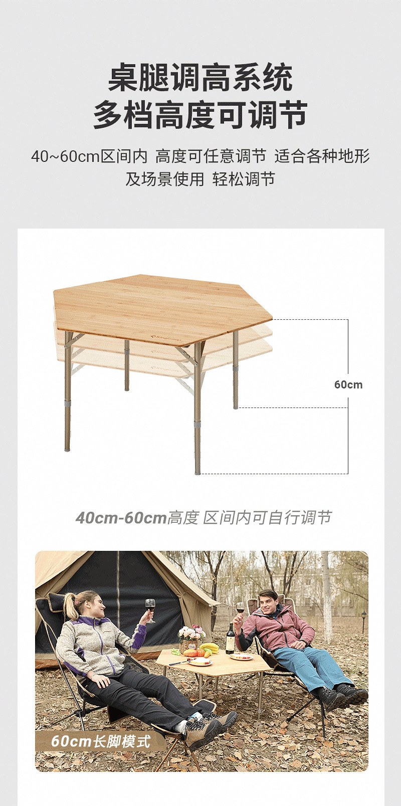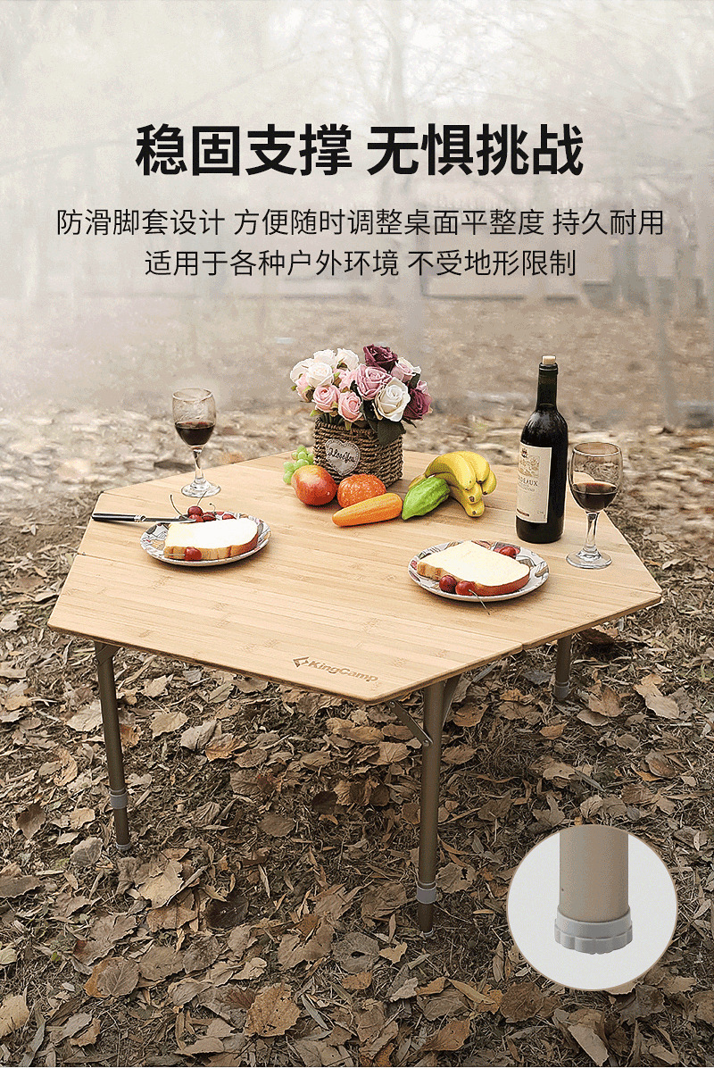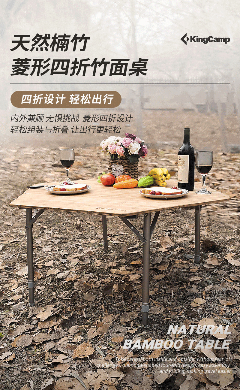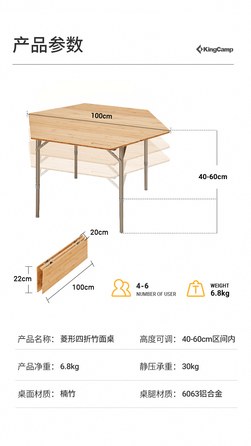 KingCamp 캠핑 피크닉 테이블 육면 대나무 표면 알루미늄 합금 야외 접이식 테이블 휴대용 자동차스토어 가기