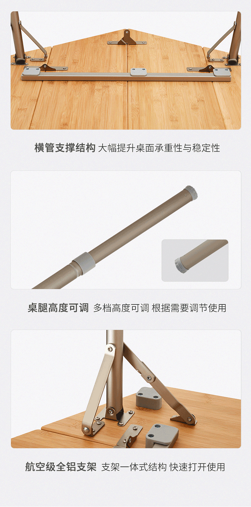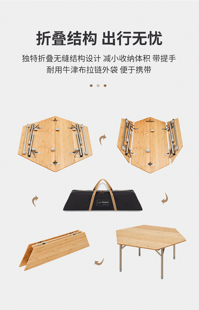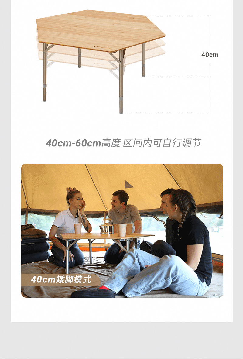 KingCamp 캠핑 피크닉 테이블 육면 대나무 표면 알루미늄 합금 야외 접이식 테이블 휴대용 자동차스토어 가기