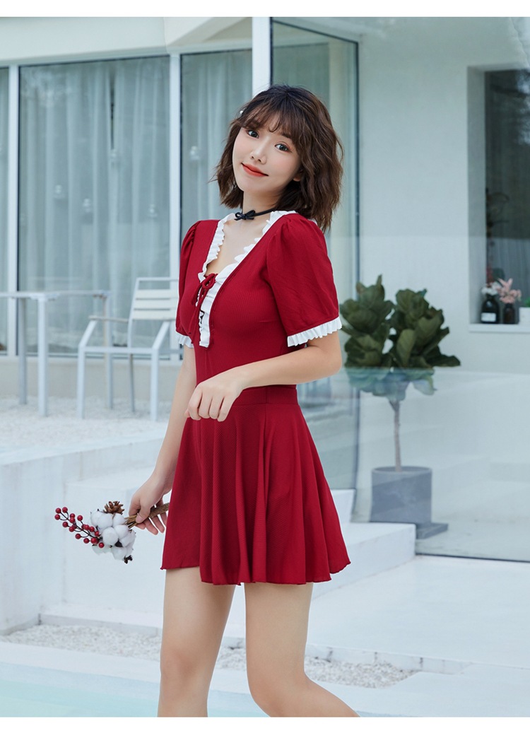 수영복 여성용 원피스 보수적 슬리밍 배꼽 커버 한국 새로운 투피스 스플릿 스커트 세트 작은 가슴 모여 온천 수영복스토어 가기
