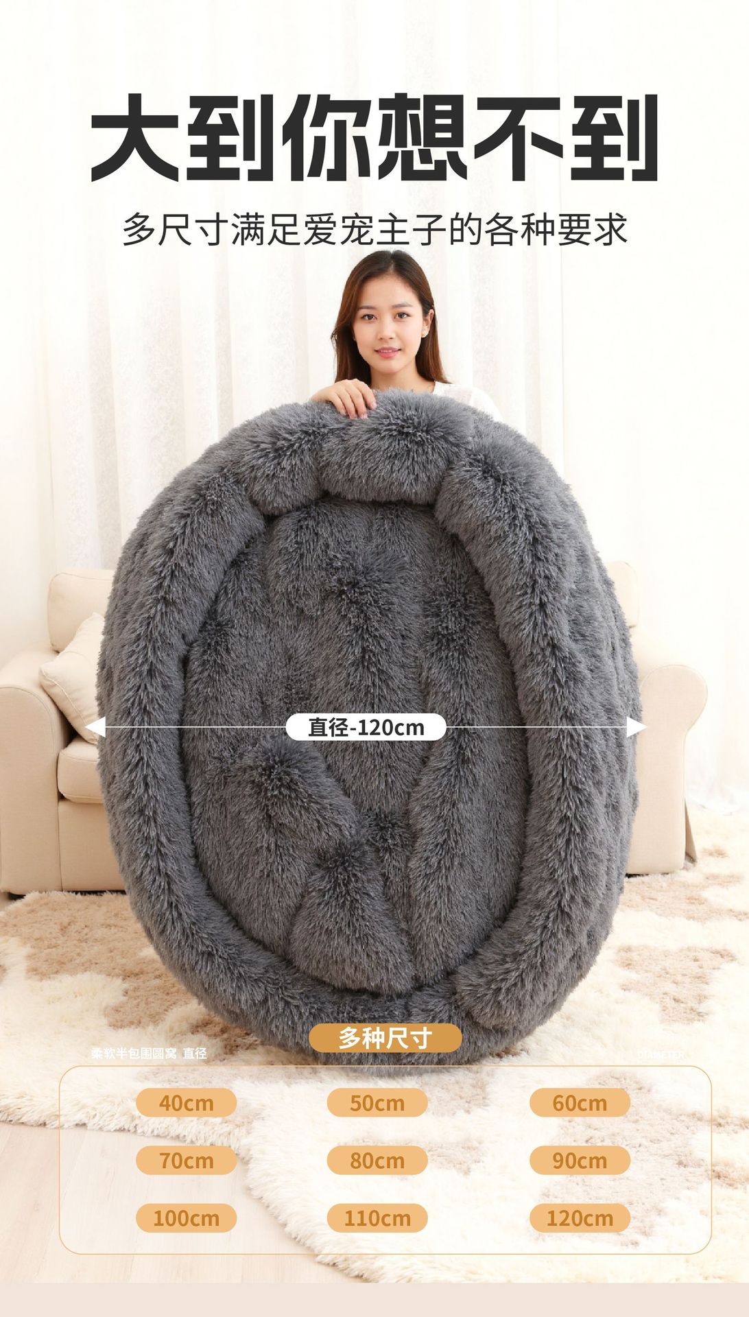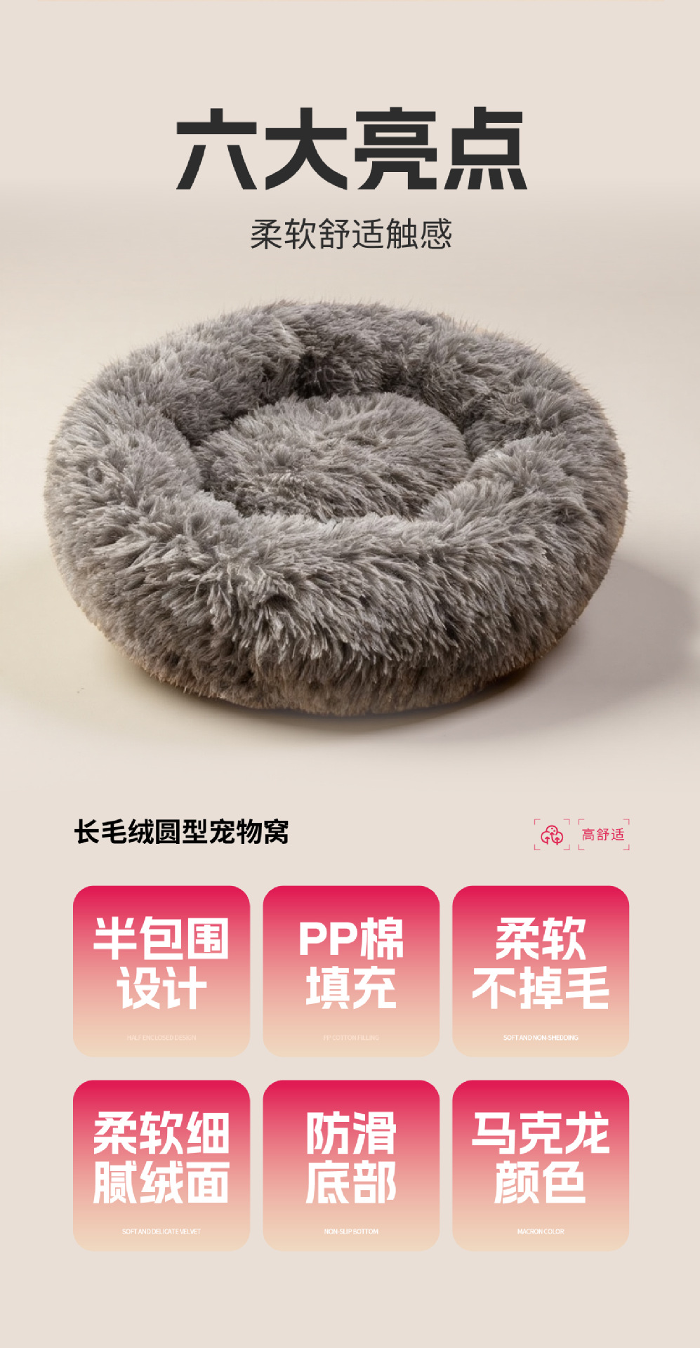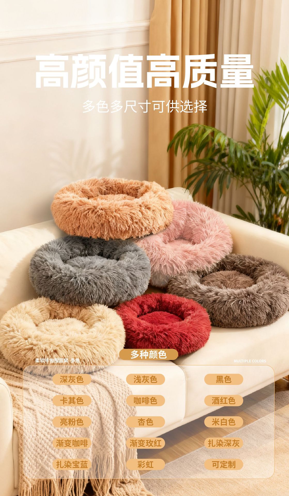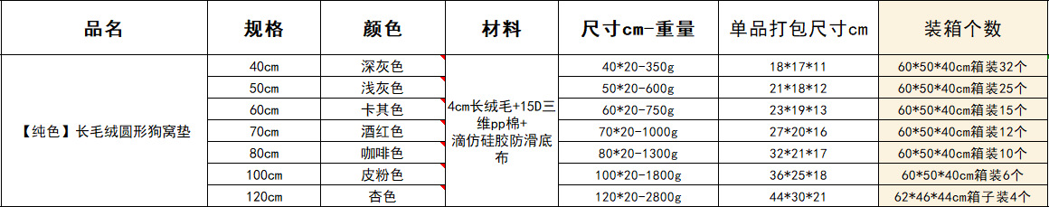 产品名称:长毛绒圆形宠物窝 普通款 多色多尺寸