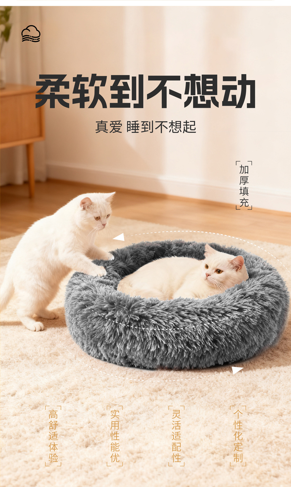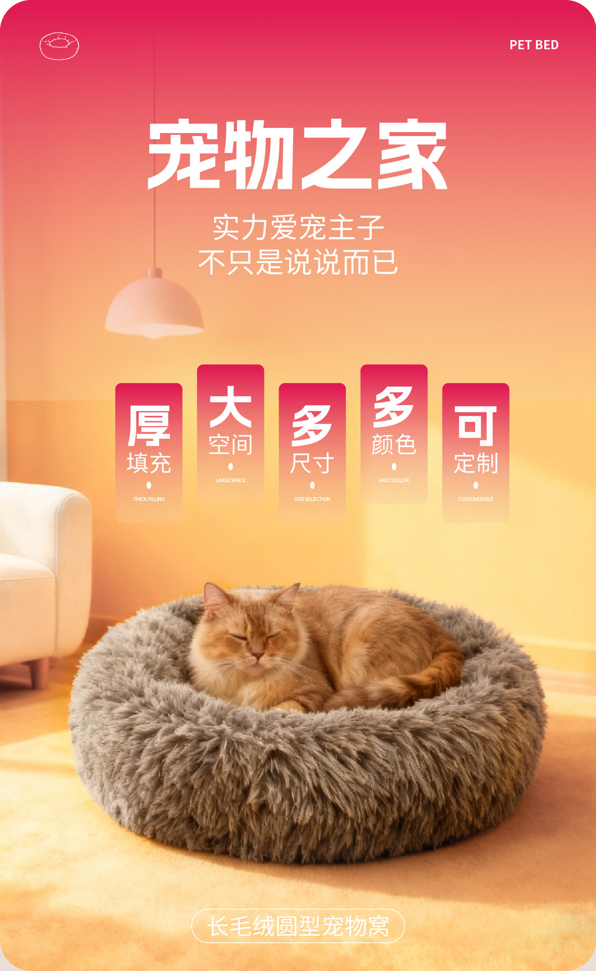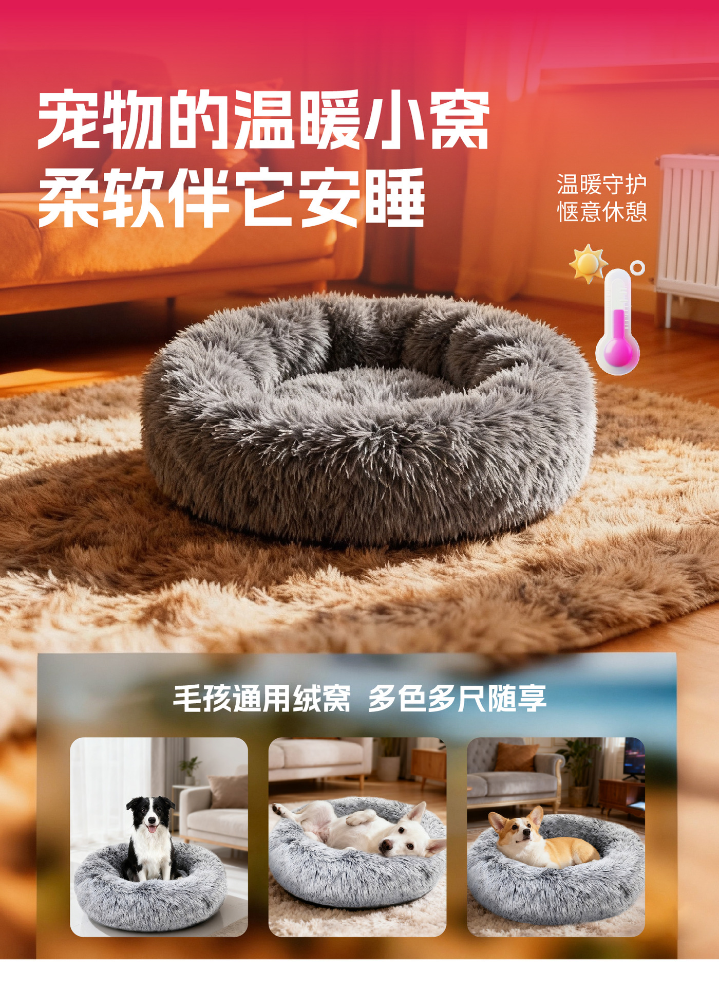 产品名称:长毛绒圆形宠物窝 普通款 多色多尺寸