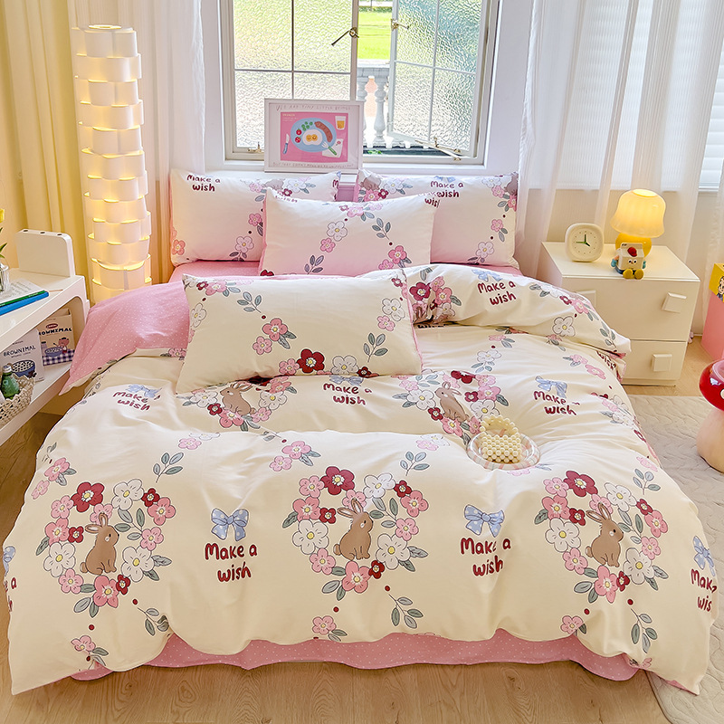 면 인쇄 4 피스 세트 100 면 침대 시트 퀼트 커버 싱글 더블 침대 4 피스 세트 학생 3 피스 세트 도매