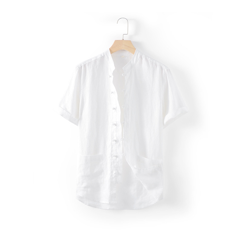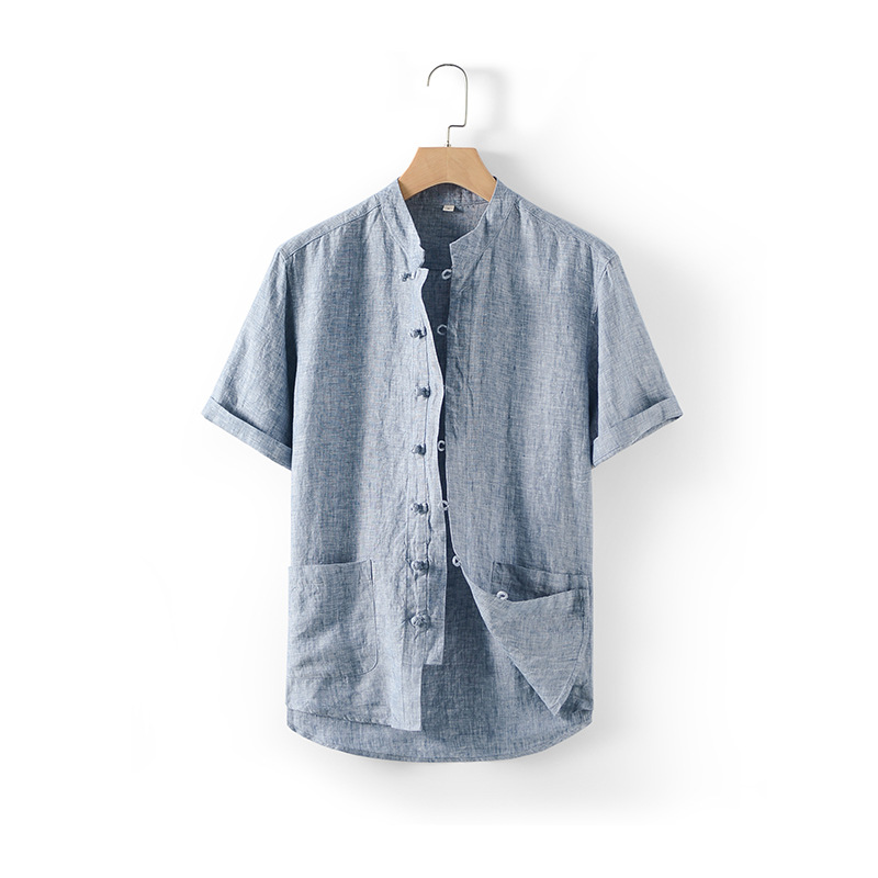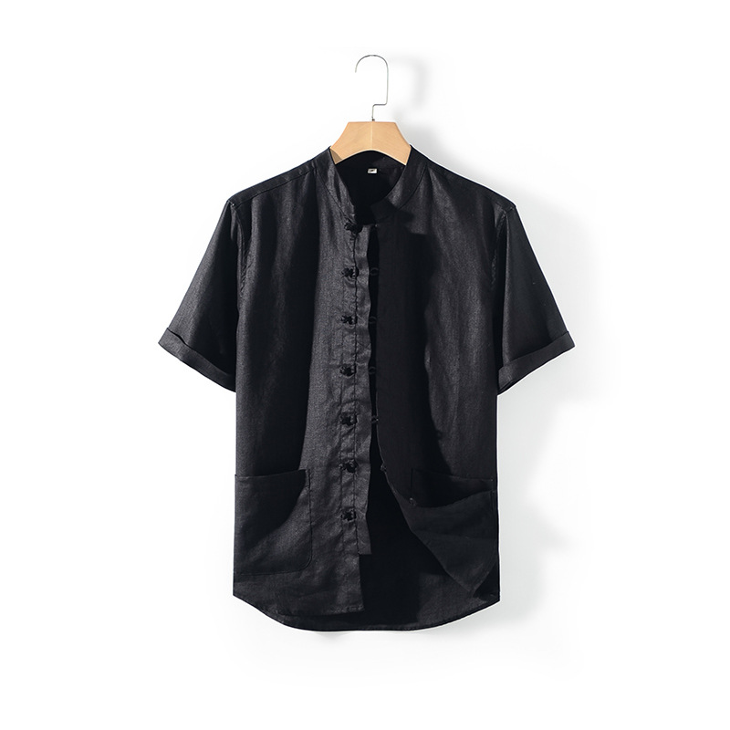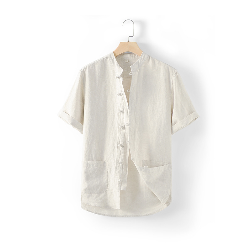 2024 뉴 리넨 남성 중국 스타일 레트로 리넨 셔츠 버튼 스탠드 칼라 리넨 탑 반팔 D007