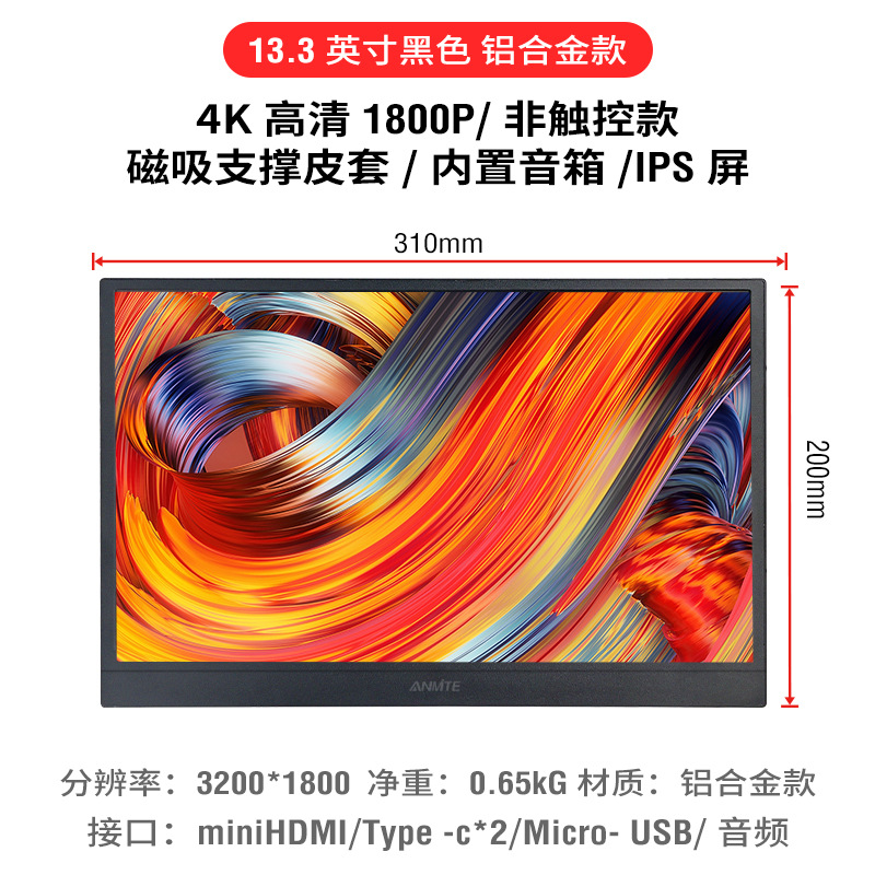 Anmeite 15.6 "HD 터치 휴대용 디스플레이 직접 연결 컴퓨터 휴대 전화 화면 확장