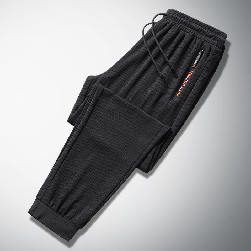 아이스 실크 캐주얼 바지 남성용 여름 초박형 느슨한 스트레이트 레그 남성용 메쉬 속건 플러스 대형 스포츠