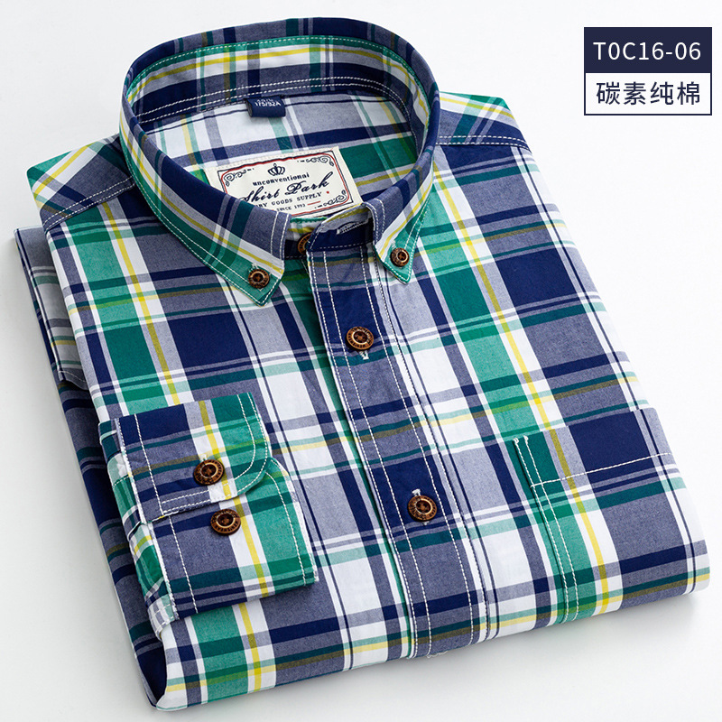 2021 패션 새로운 봄과 가을 면 격자 무늬 셔츠 슬림핏 격자 무늬 긴 소매 비즈니스 남성 캐주얼 셔츠스토어 가기