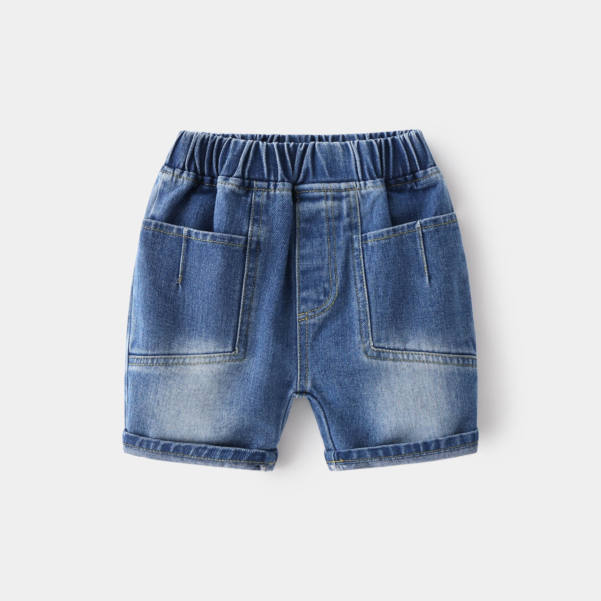 2024년 신상 여름 스타일 아동 데님 5부 팬츠, 한국식 캐주얼 남아 팬츠, 트렌디하고 패셔너블한 루즈한 허리 중간 길이 팬츠스토어 가기