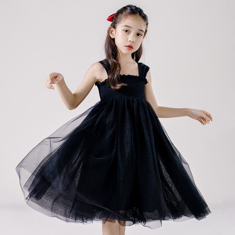 여아 원피스 여름 요정 검은 그릇 원피스 원피스 공주 치마 활 메쉬 슬링 스트랩 원피스
