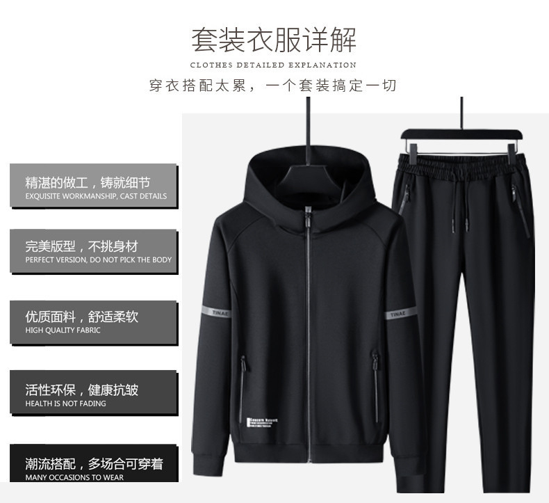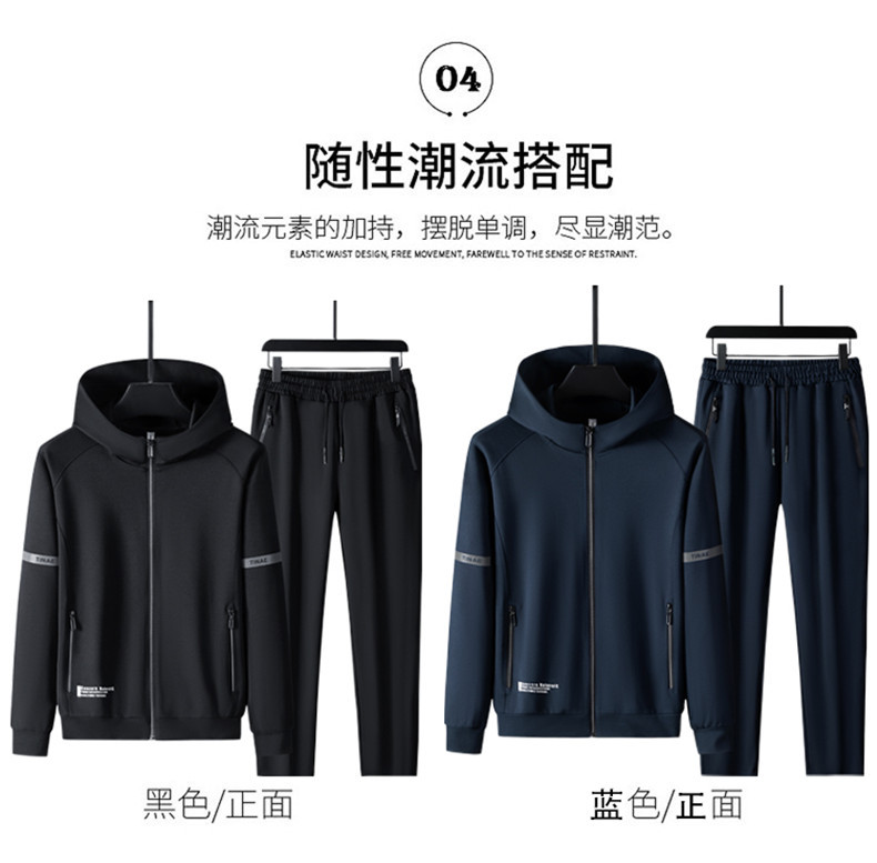 새로운 봄과 가을 스포츠 세트 남자의 스판덱스 투피스 느슨한 후드 플러스 사이즈 캐주얼 스웨터 카디건 탑 트렌디스토어 가기