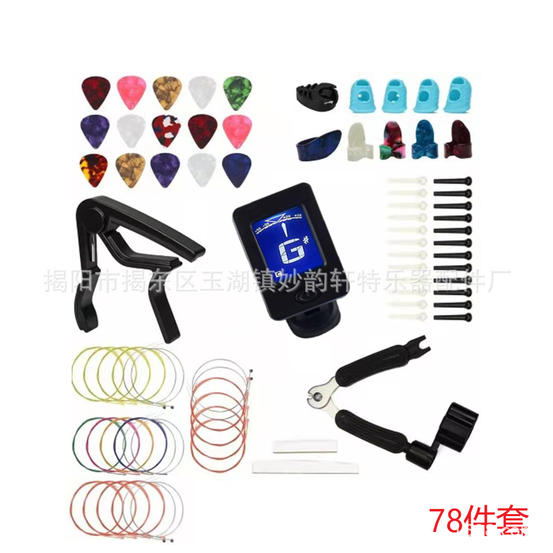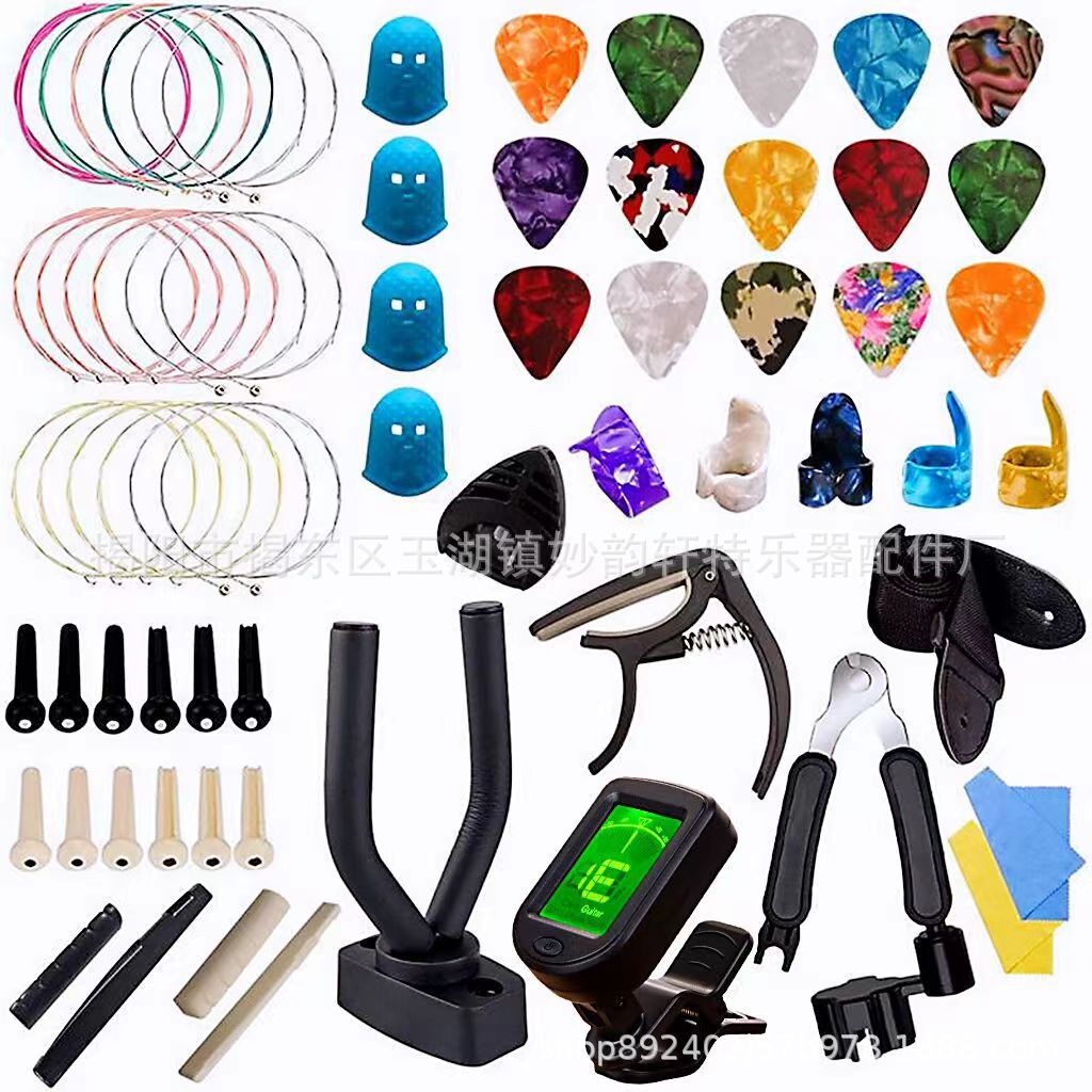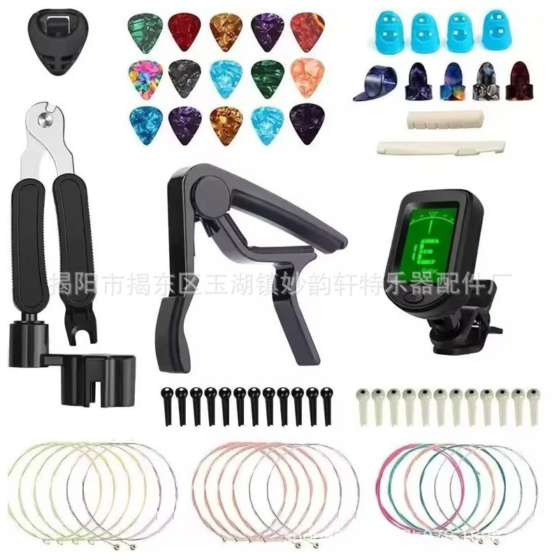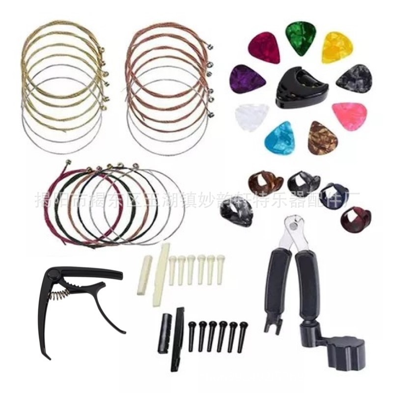 아마존 핫 기타 액세서리 세트 핑거 코트/세트 스트링/페켓/스트링 네일 스트링 베개 3 대 1 스트링 변경 조합스토어 가기