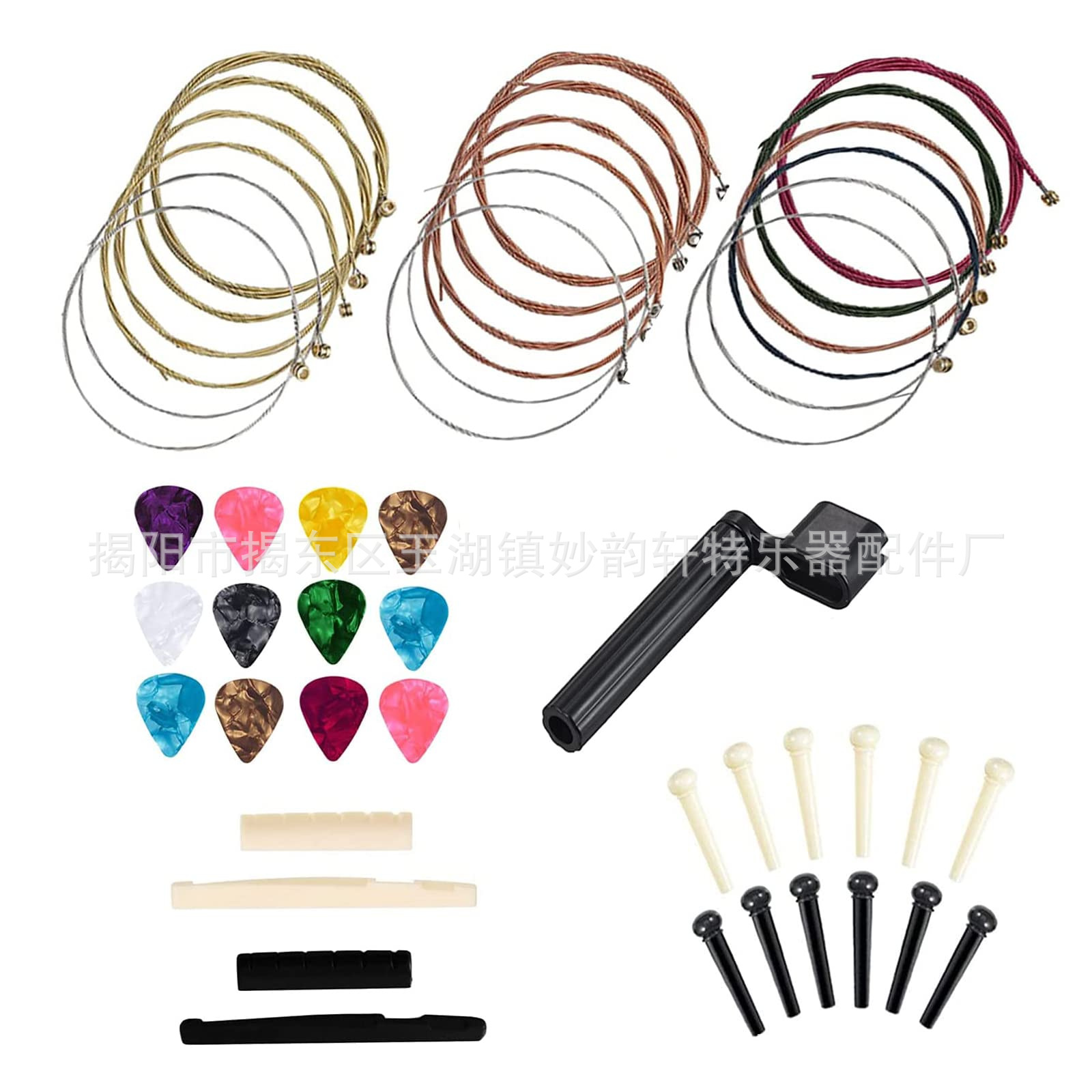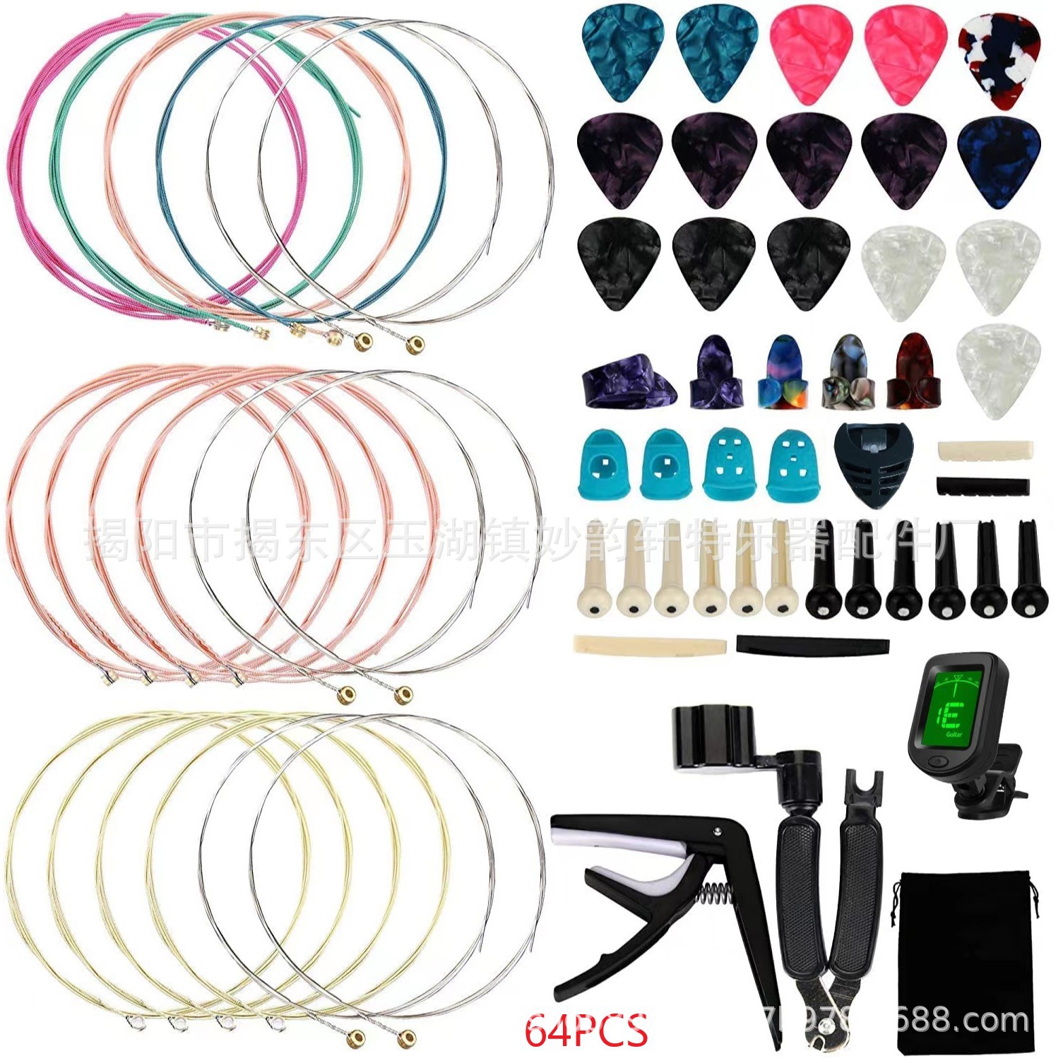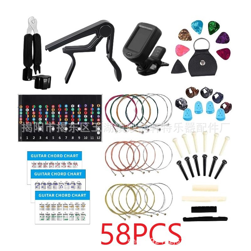 아마존 핫 기타 액세서리 세트 핑거 코트/세트 스트링/페켓/스트링 네일 스트링 베개 3 대 1 스트링 변경 조합스토어 가기