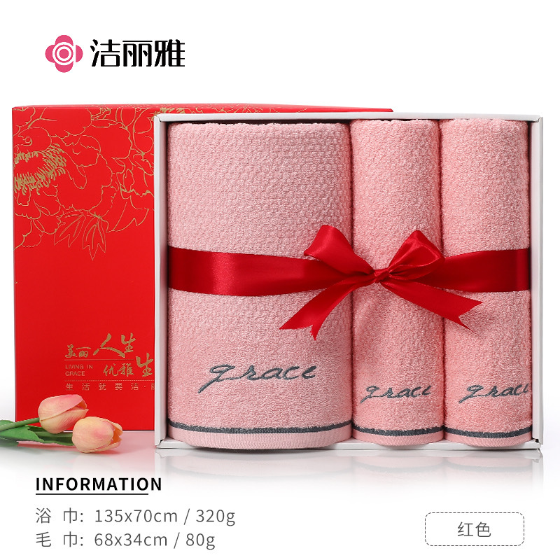 Jielia 7254 3 종 선물 상자 순면 목욕 타올 선물 상자 자수 로고 Jielia 목욕 타올 선물 상자