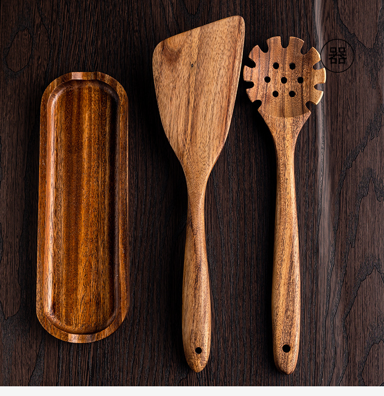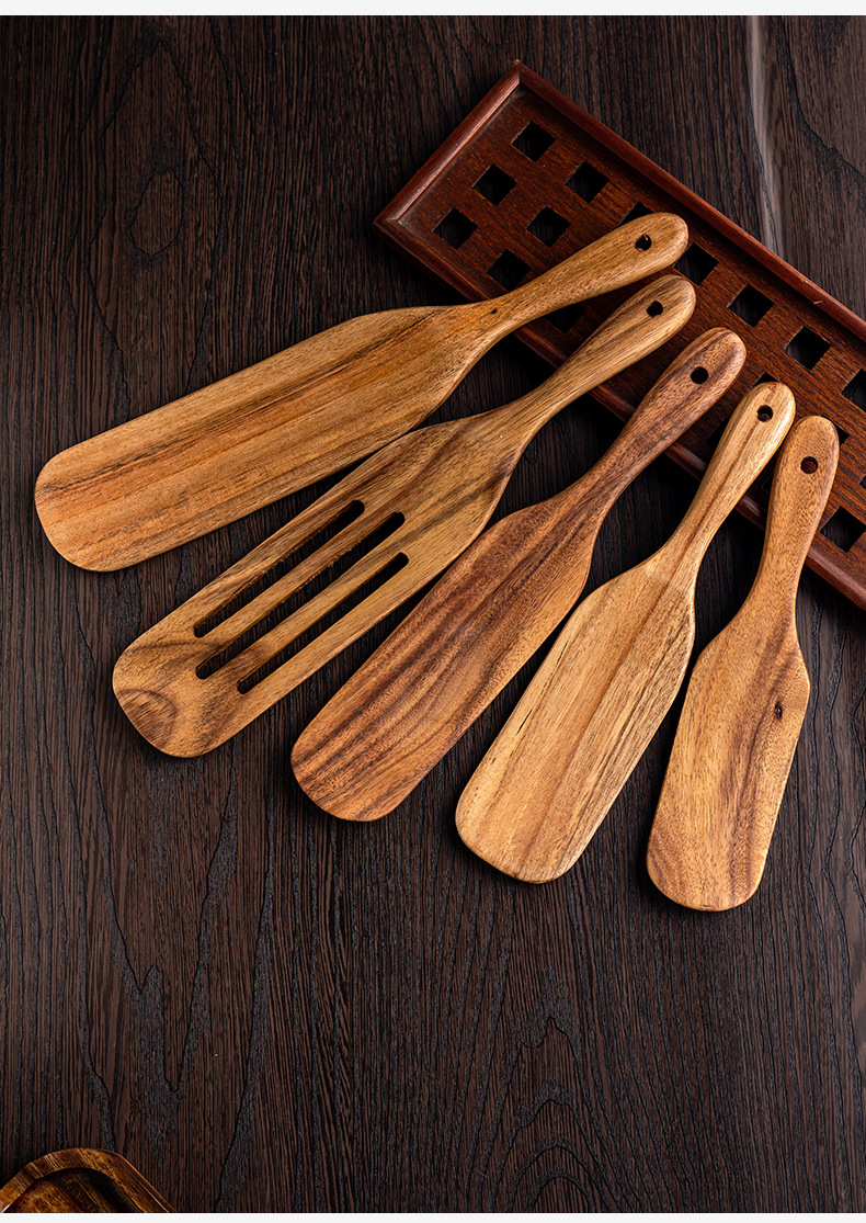 무역 및 외국 삼선 삽 공장 도매 새로운 티크 주걱 삽 목재 조리 키트 레이저 로고스토어 가기