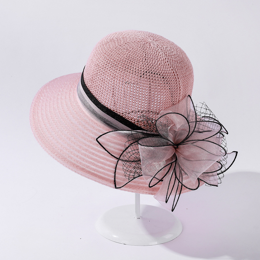 모자 제조 업체 여성의 여름 organza 큰 가장자리 바느질 태양 모자 꽃 패션 태양 모자 휴가 해변 모자 조수스토어 가기