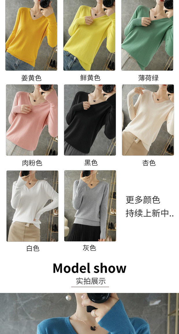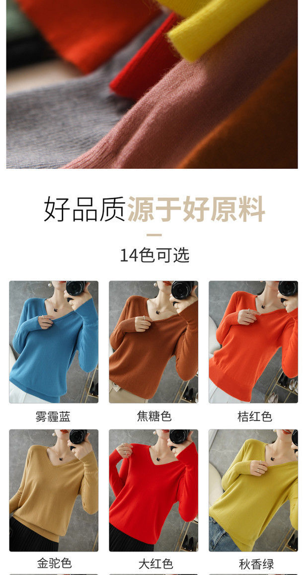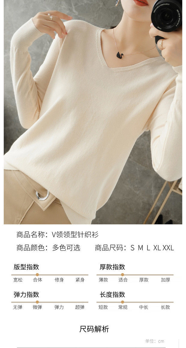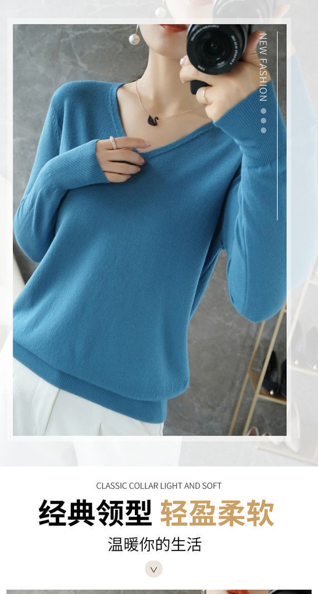 봄과 가을 새로운 캐시미어 스웨터 여성용 V 넥 얇은 스웨터 느슨한 니트 긴 소매 울베이스 셔츠 유행 탑스토어 가기