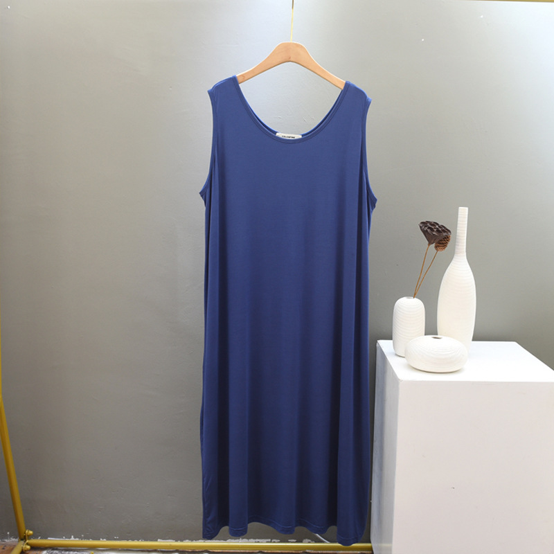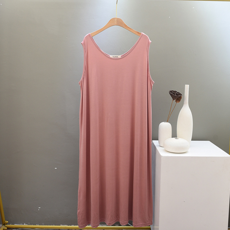 모달 잠옷 여자의 여름 통통녀 느슨한 민소매 원피스 얇은 가정 옷 아이스 쿨 캐주얼 조끼 긴 원피스