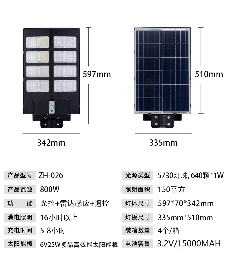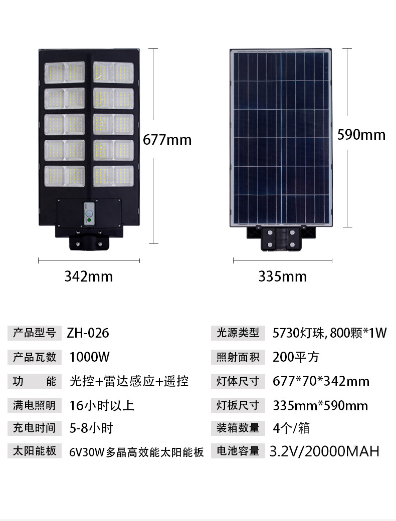 Zunhui 야외 태양 통합 가로등 led 유도 빛 태양 정원 빛 야외 고출력 가로등