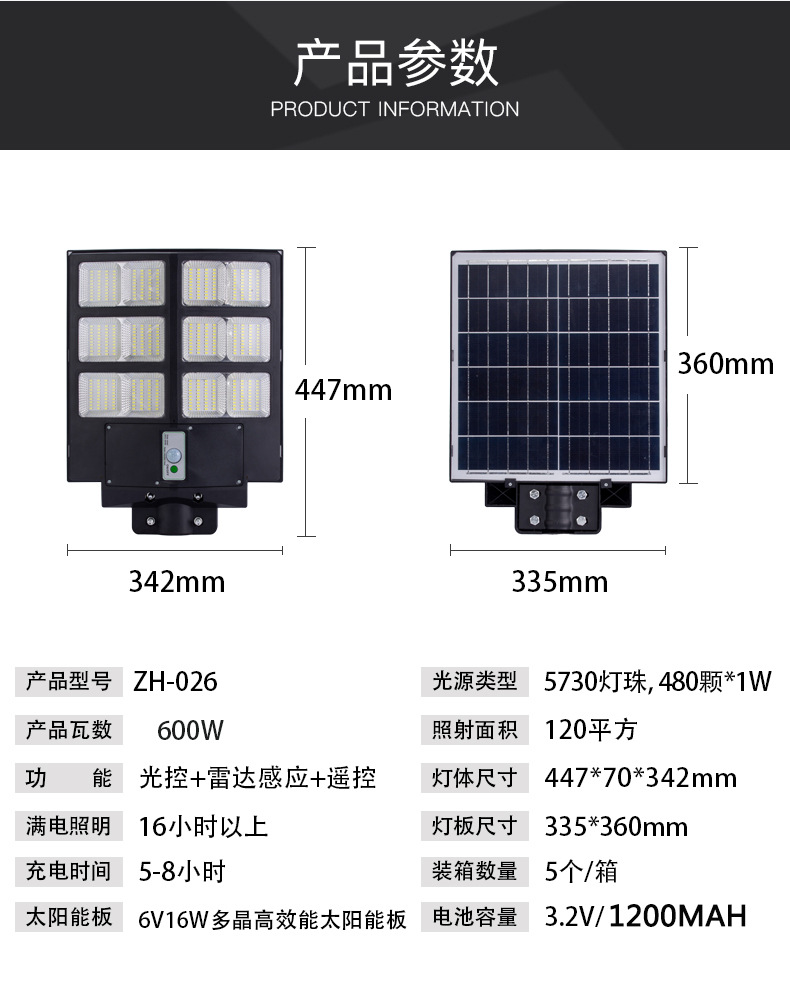 Zunhui 야외 태양 통합 가로등 led 유도 빛 태양 정원 빛 야외 고출력 가로등스토어 가기