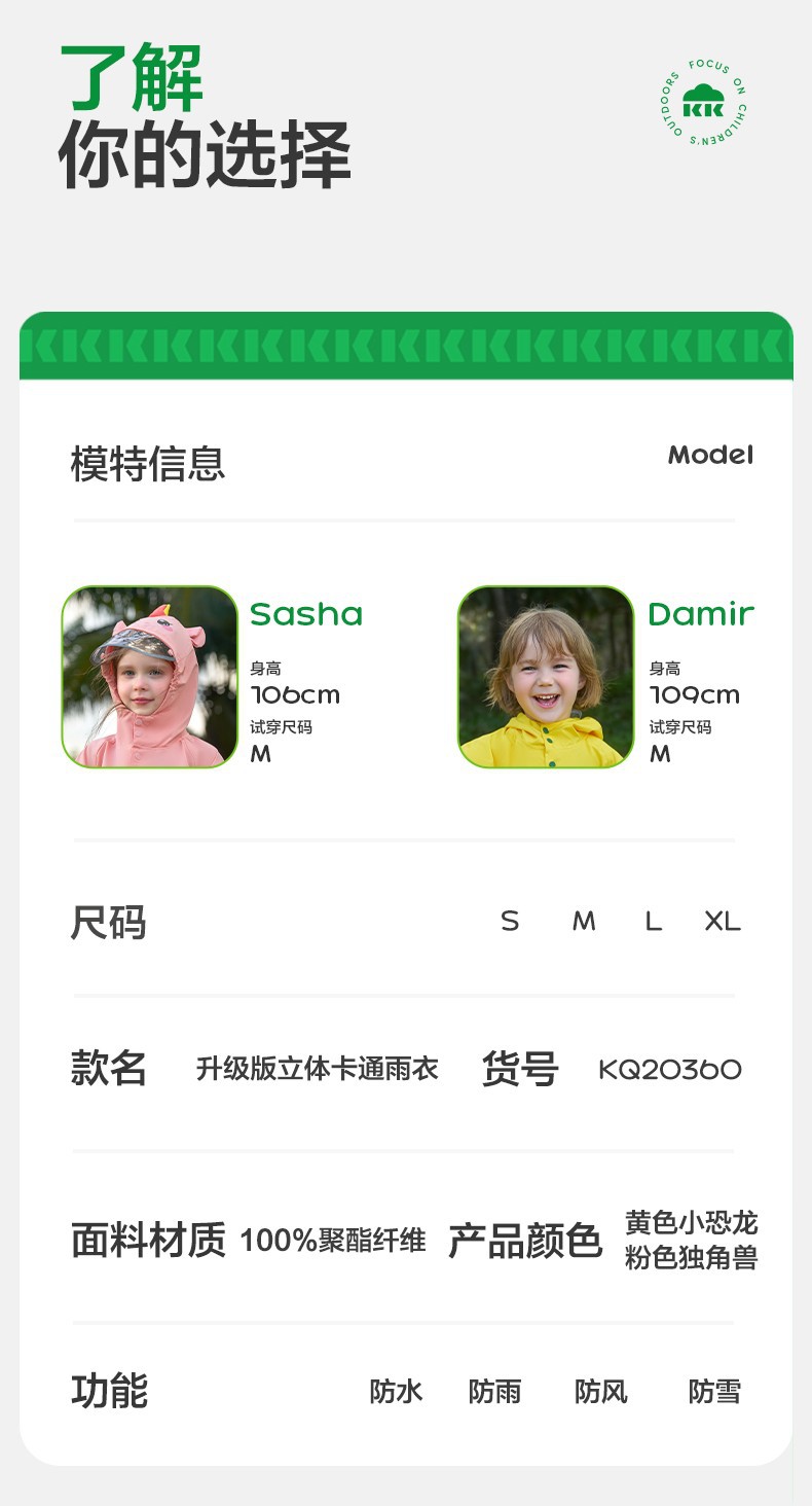 KK 트리 어린이 비옷 소년 소녀 아기 판초 유치원 특별 전신 초등학교 소년 소녀 공룡스토어 가기