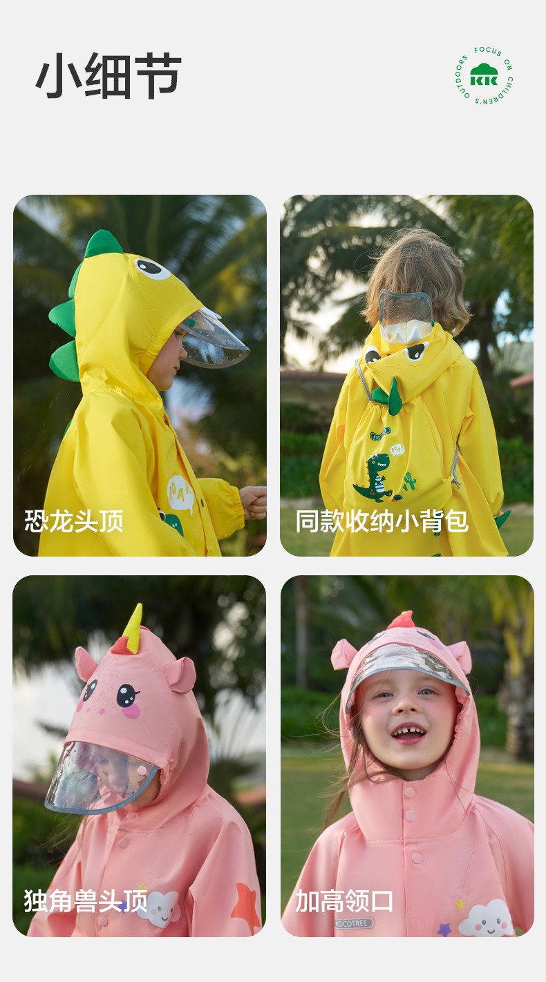 KK 트리 어린이 비옷 소년 소녀 아기 판초 유치원 특별 전신 초등학교 소년 소녀 공룡