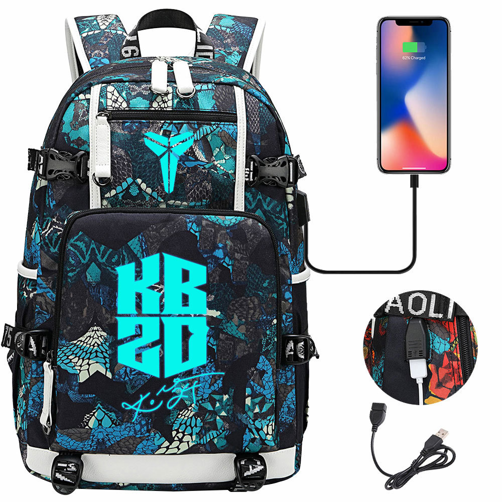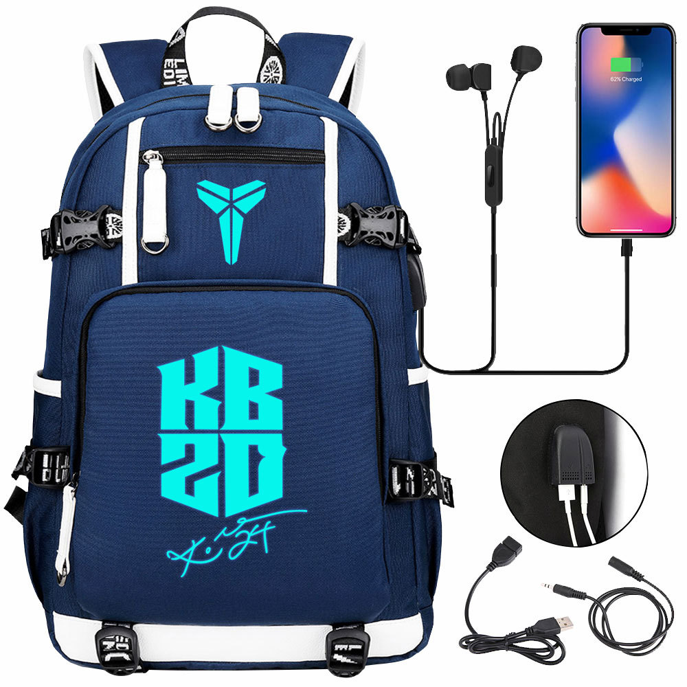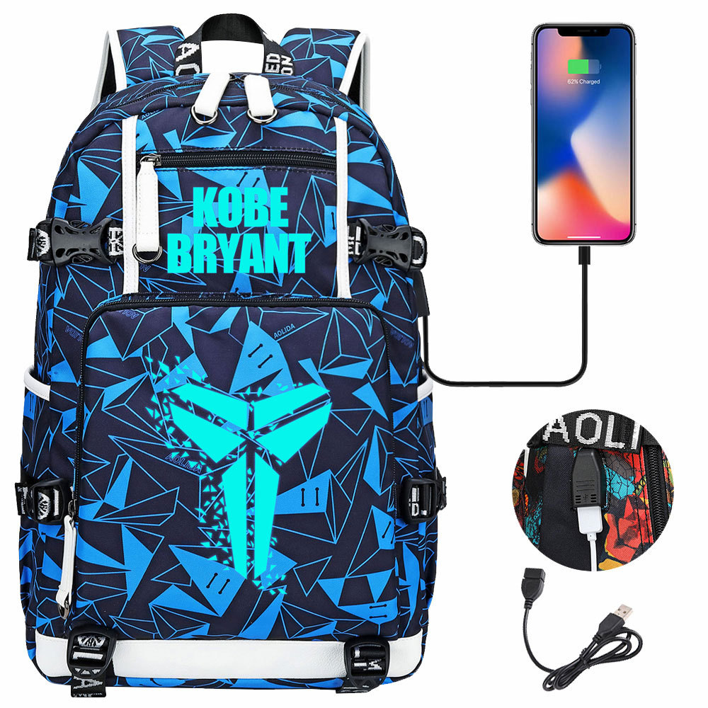 블루 루미너스 인기 고베 USB 대용량 십대 학생 책가방 남성 및 여성 레저 여행 배낭