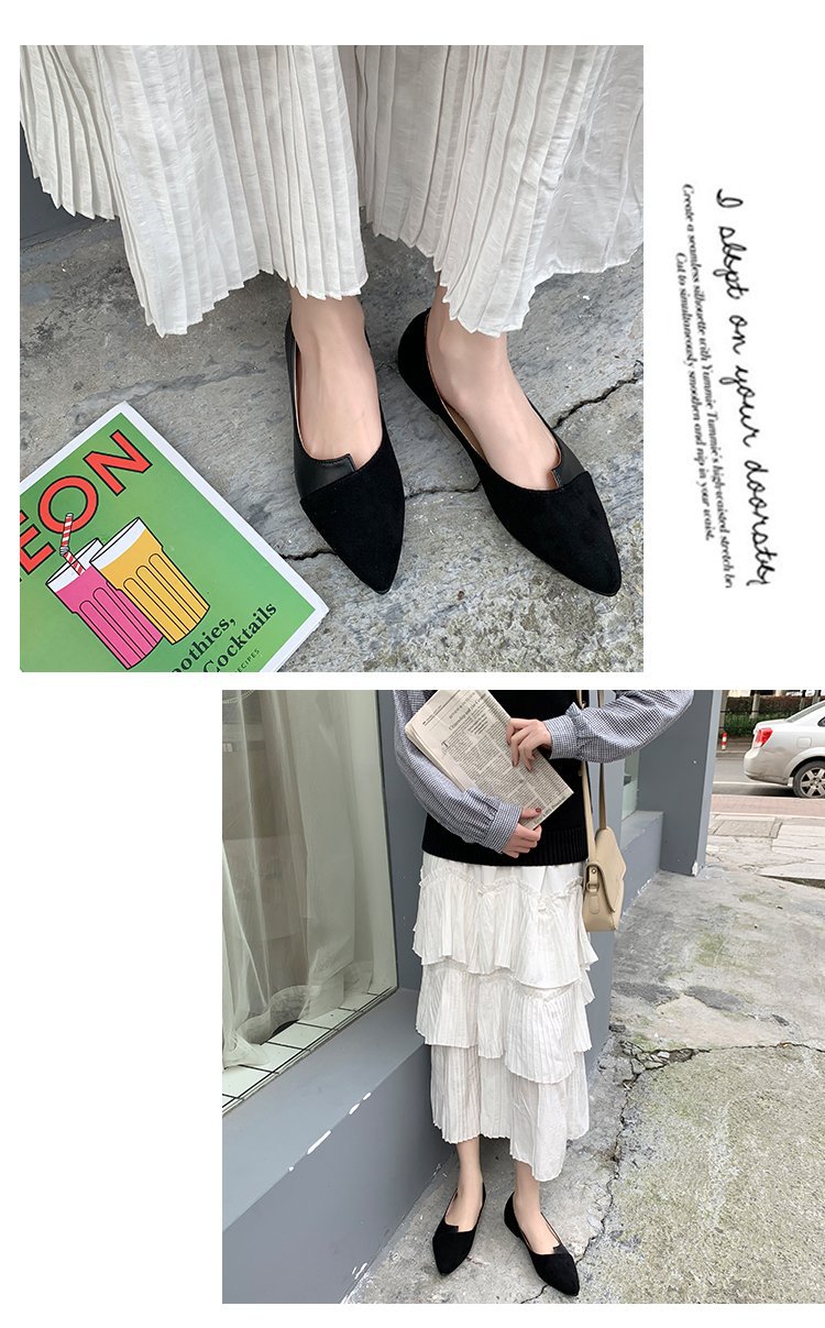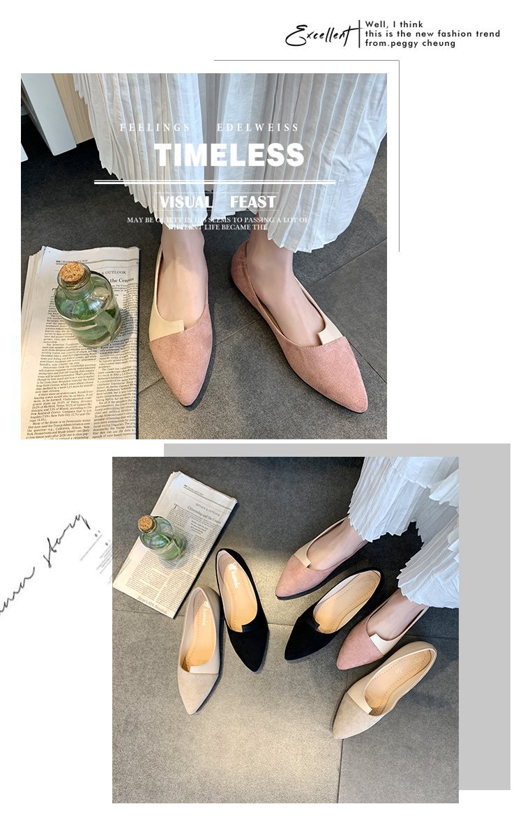 2024 봄 새로운 여성 신발 패션 컬러 매칭 저녁 신발 얕은 입 착용 뾰족한 평면 작은 신발 여성 도매