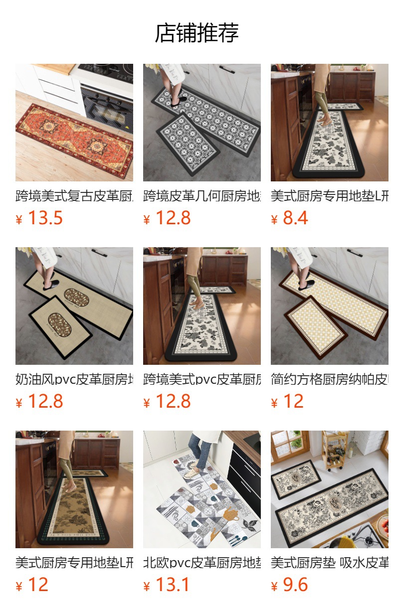 국경 간 북유럽 가죽 주방 바닥 매트 PVC 세척 방지 방수 및 내유성 바닥 매트 eva 폼 주방 매트 제조업체 직접스토어 가기