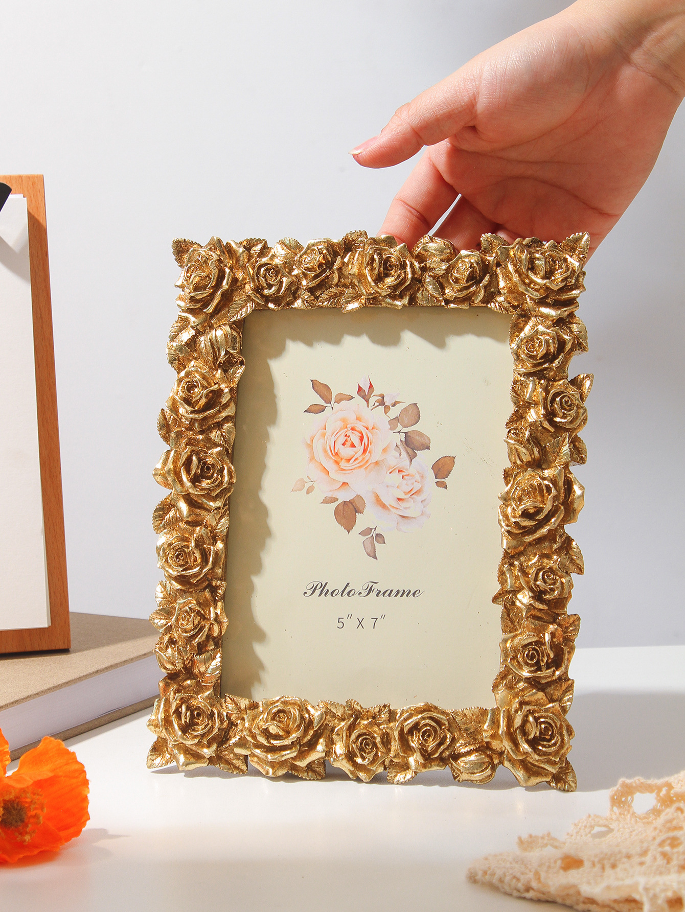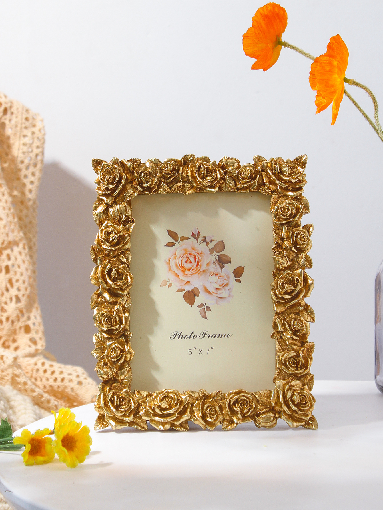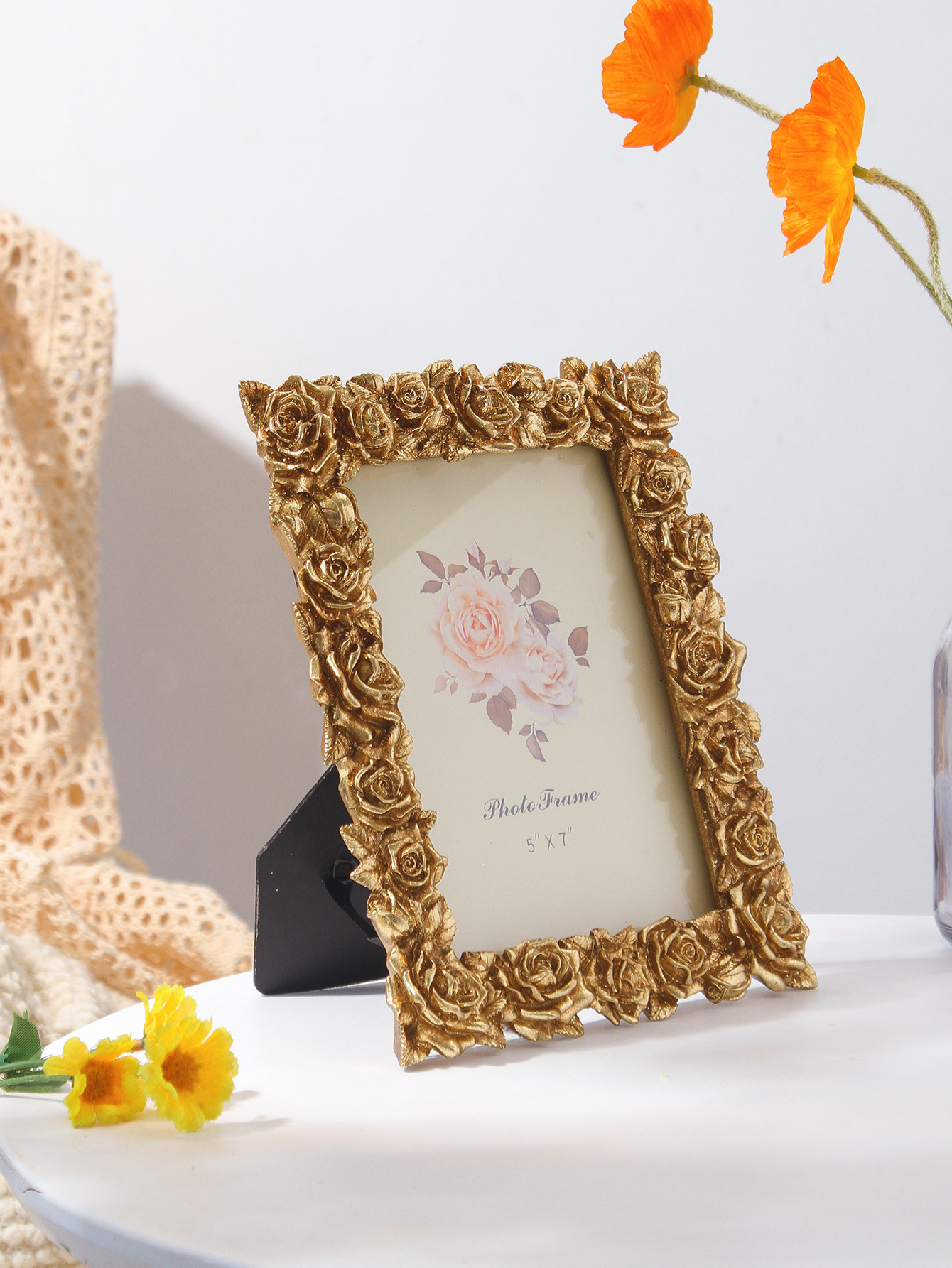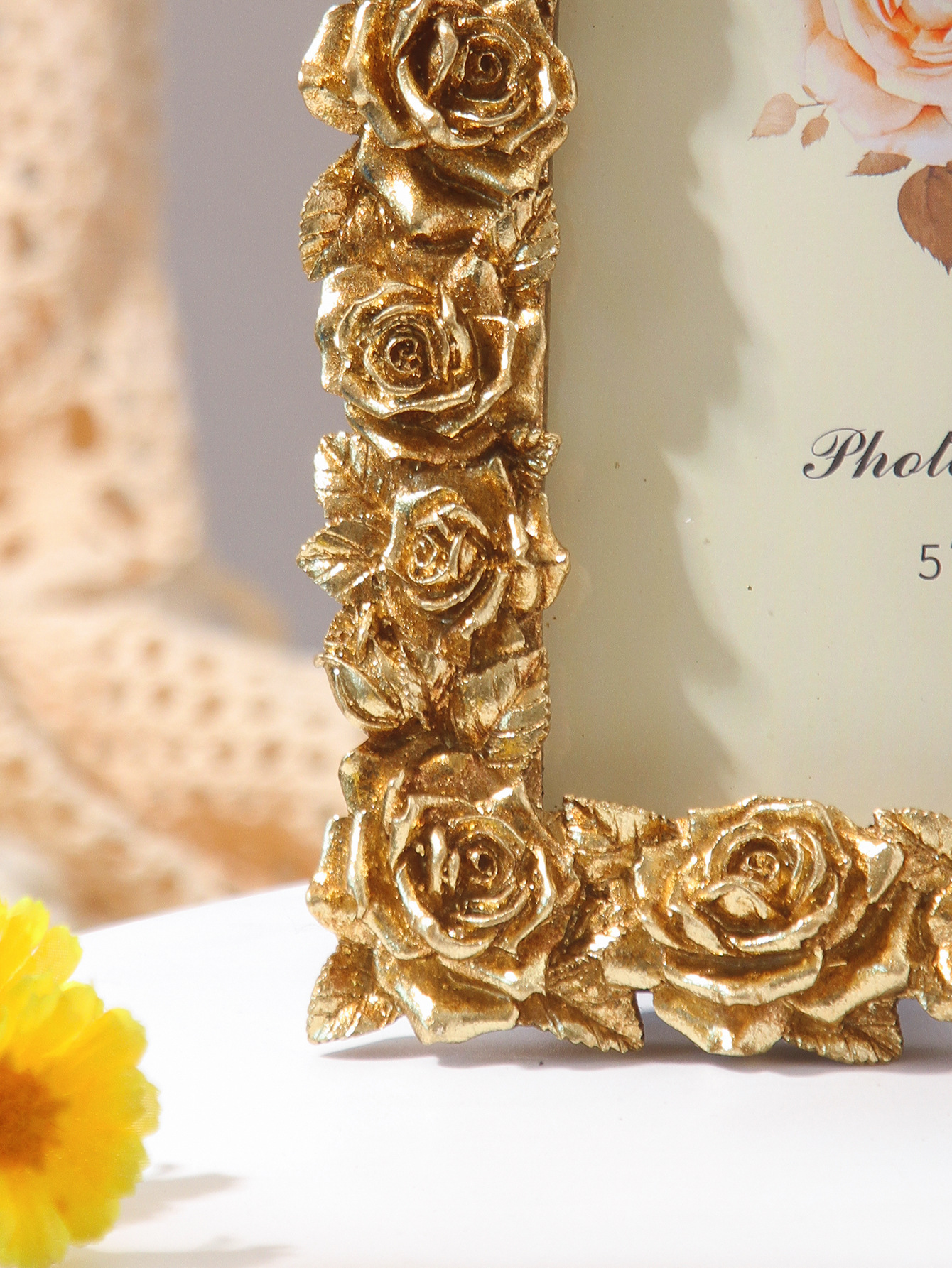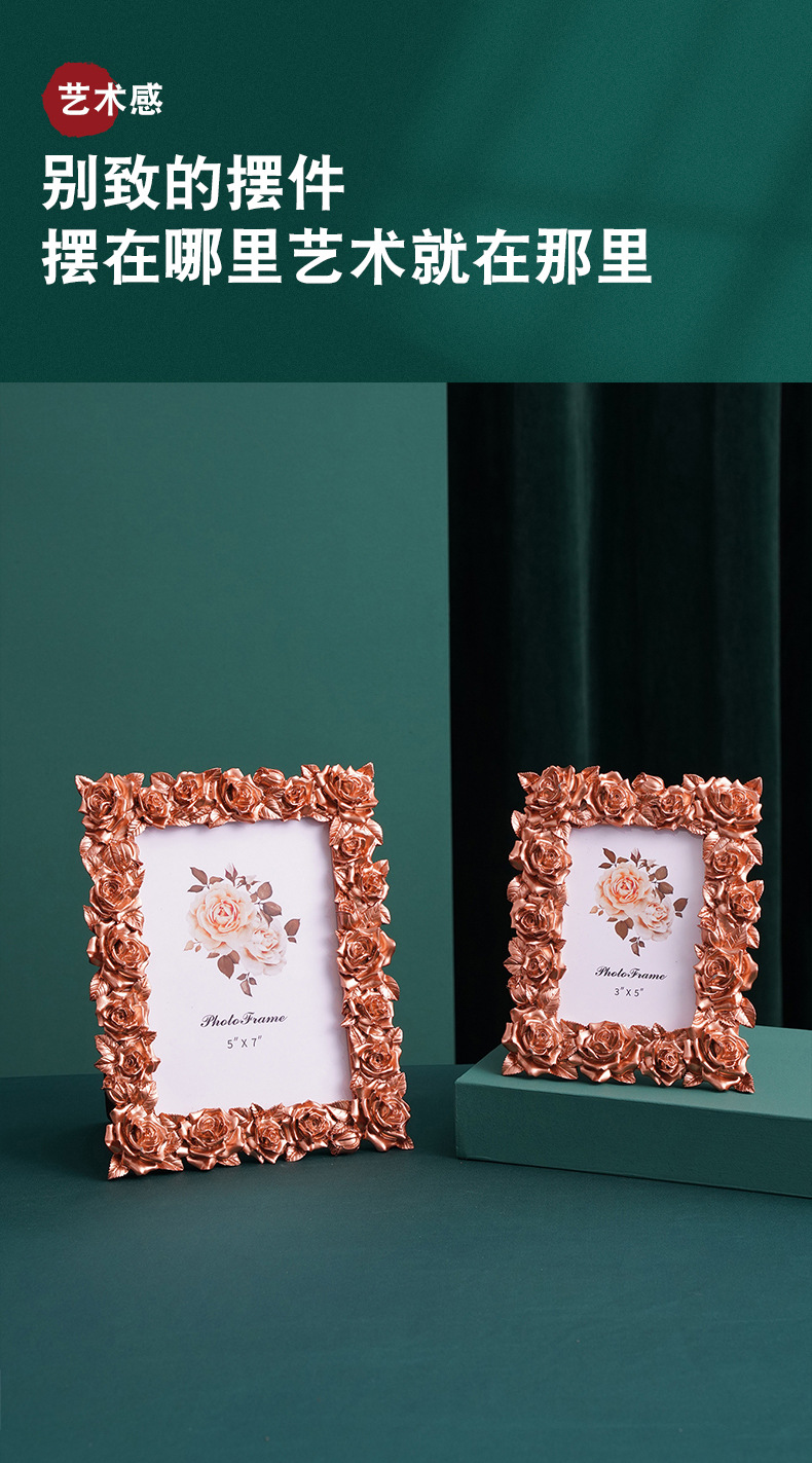새로운 데스크탑 유럽 스타일의 작은 장식품 액자 복고풍 액자 테이블 장식 장미 꽃 현대 5 6 7inch 액자 장식품